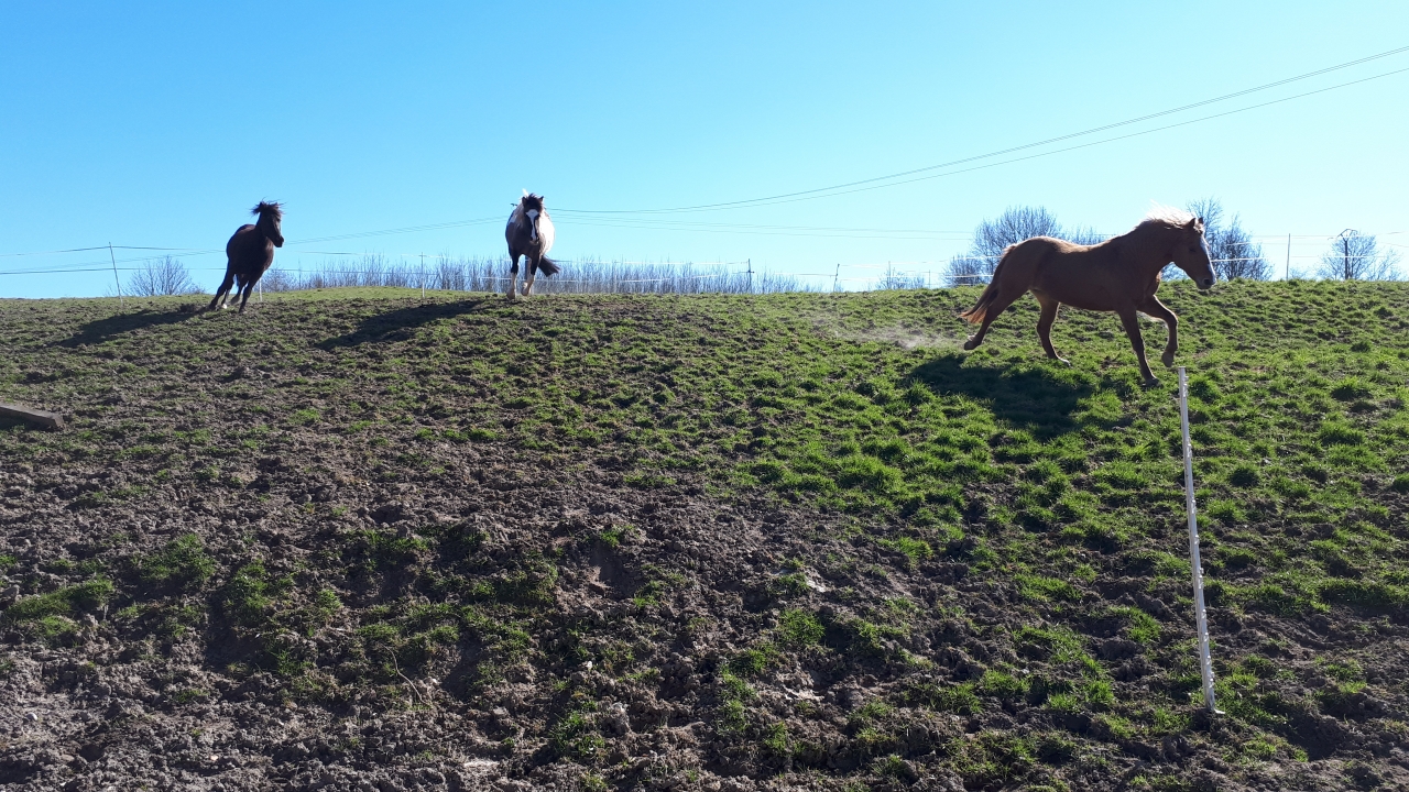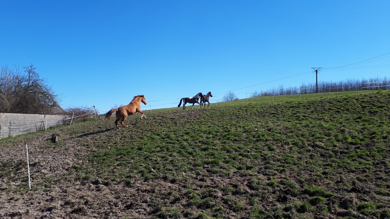 | Dire merci | Chez nous on galope on descente ![]() ![]() Taïaut ![]() Sur celle-là, je trouve qu'on voit bien le physique Konik Polski de Love : ![]() Ventre à terre ![]() ![]() |
