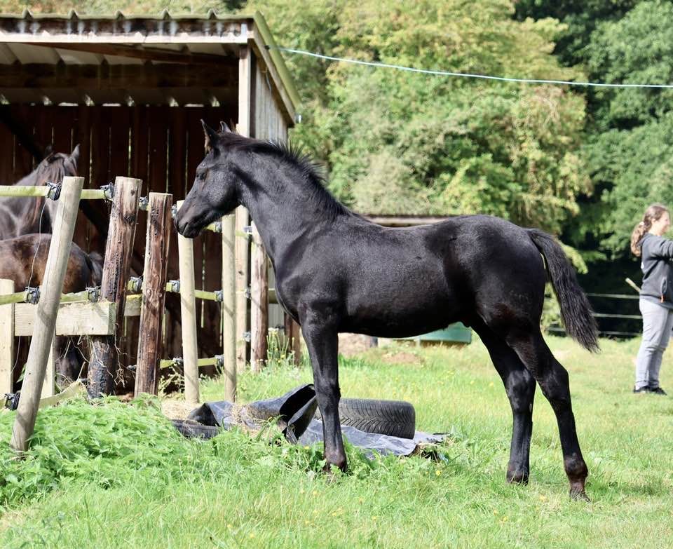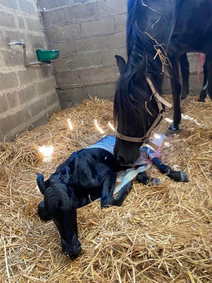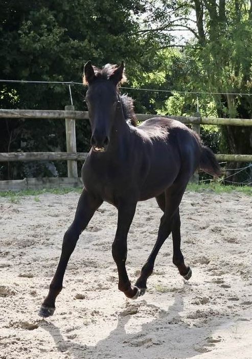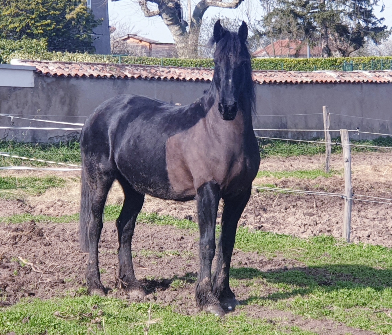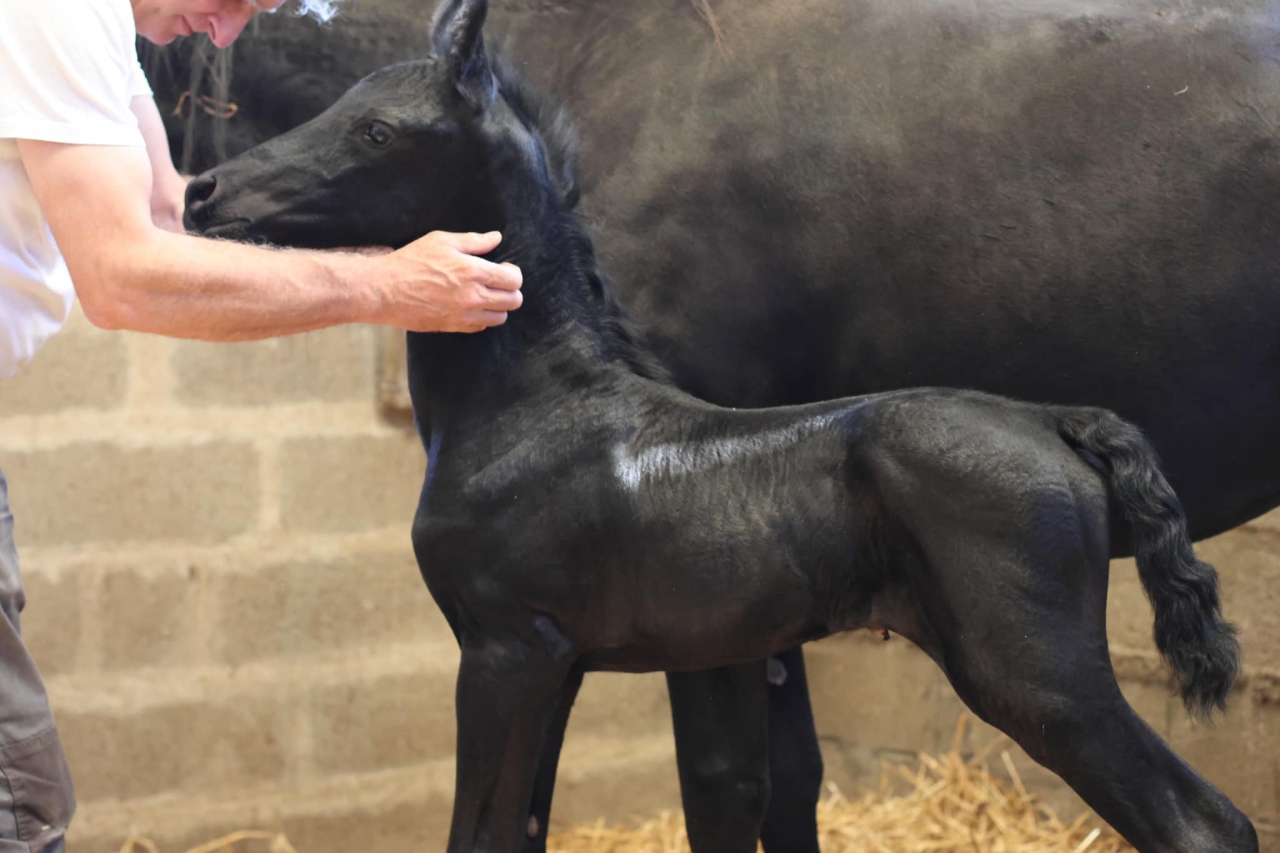 | Dire merci1 | Bonjour, je ne fréquente habituellement pas du tout cette partie du forum (pas assez de temps pour tout lire, je me contente de lire les sujets dont le titre me "parle" sur le général) mais on (k.zel ) m'a demandé de venir présenter mon futur petit loulou...Voici donc Wesley, un arabo-frison qui a fêté ses 7 mois le 1er janvier. J'ai la chance que l'élevage ait partagé des photos de lui quand il était tout petit, ce que je n'ai pas pu avoir avec ma jument, donc j'en profite pour vous les partager... * à la naissance : * à 2 (ou 3 ?) jours : * à peu près à ses 3 mois : Ce petit Wesley a été mon "craquage" (financièrement) de fin 2023 !! Depuis à peu près un an, je commençais à songer à la future relève de ma jument, elle aussi arabo-frisonne et dont je suis totalement amoureuse , sans être trop pressée (elle prend 16 ans cette année).Ce que j'apprécie le plus chez elle, c'est son mental, son côté "ultra-pratique" et 100% gentille avec l'humain. J'avais donc un peu songé aux Franches-montagnes pour la relève... Mais je suivais les publications de cet élevage d'arabo-frisons depuis quelques années et j'ai eu le coup de cœur sur photo pour un petit bonhomme... qui n'était pas Wesley ! J'avais un planning estival et automnal chargé et nous habitons à plus de 6 heures de route de l'élevage, donc avant qu'on trouve un créneau pour y aller, mon coup de cœur avait été réservé ! ![]() Je me suis quand même laissée (facilement ) convaincre par l'éleveuse qu'il fallait venir voir les autres et après avoir vu la fameuse photo de Wesley à ses 3 mois, c'est ce que nous avons fait.Message édité le 27/03/24 à 20:19 |