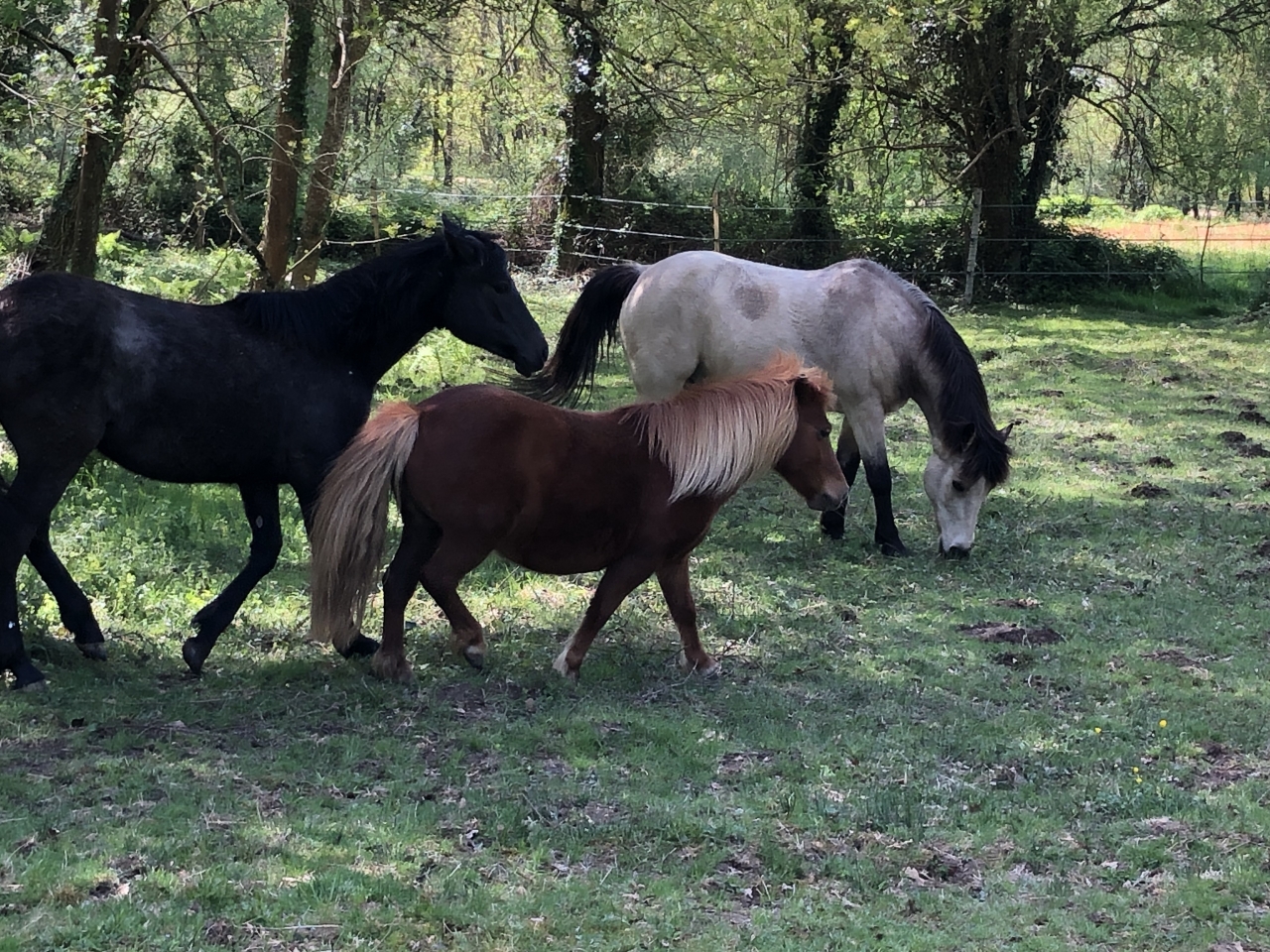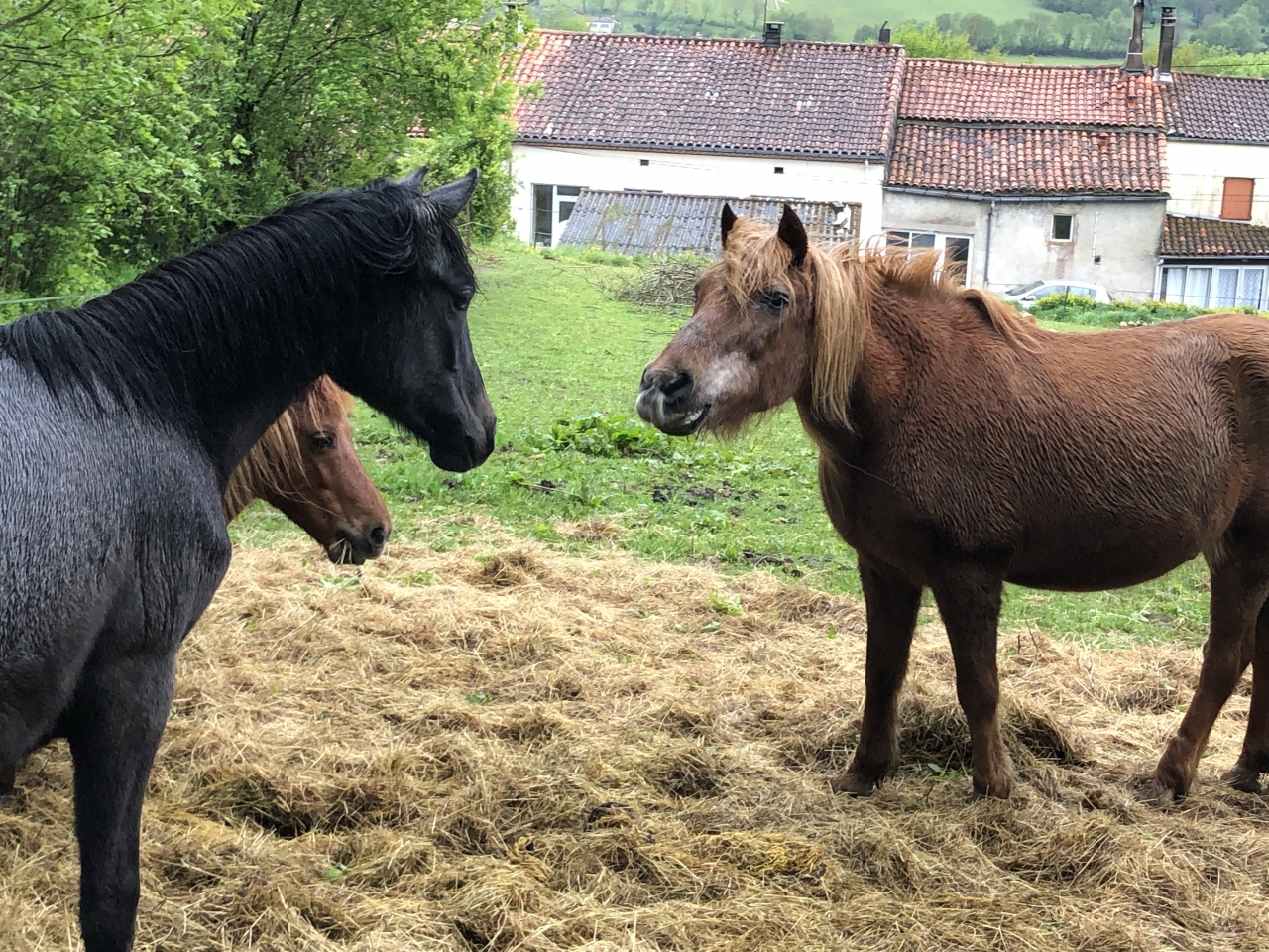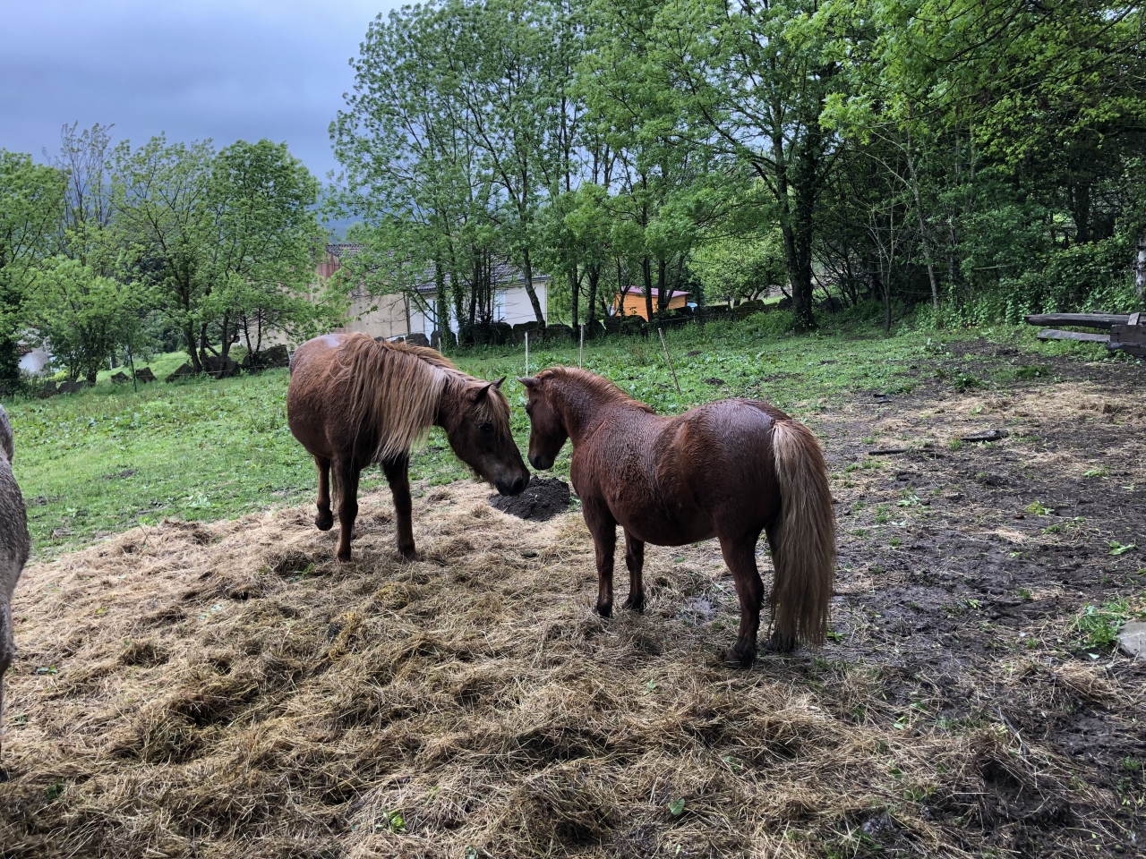| Dire merci | Et puis hier, surprise !!! Voila des années que les poneys viennent dans le jardin au printemps quelques après-midi. Betty adore venir mettre les antérieurs sur les marches et me regarder passer l'aspi; ça la fascine Mais hier, les enfants sont venus me voir alors que je passais la débroussailleuse au pré des chevaux : "Maman, Maman, y a Obi qui est rentré dans la maison !!!!!" Mais WTF ![]() Bon la photo est sombre mais bon ![]() ![]() Et du coup, il a bouffé toutes nos pommes un carnage !!!![]() Mon grand avait un copain à la maison, il s'en est pas remis ; je pense que ses parents vont nous prendre pour des fous Les poules étaient déjà rentrées, notre chèvre (décédée maintenant) s'était une fois couchée sur le canapé, mais les chevaux jamais Mon homme me dit qu'on a touché le fond |