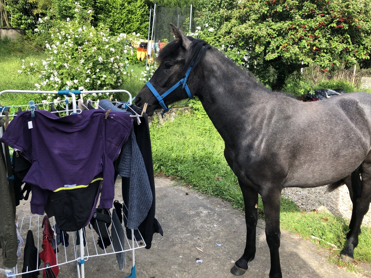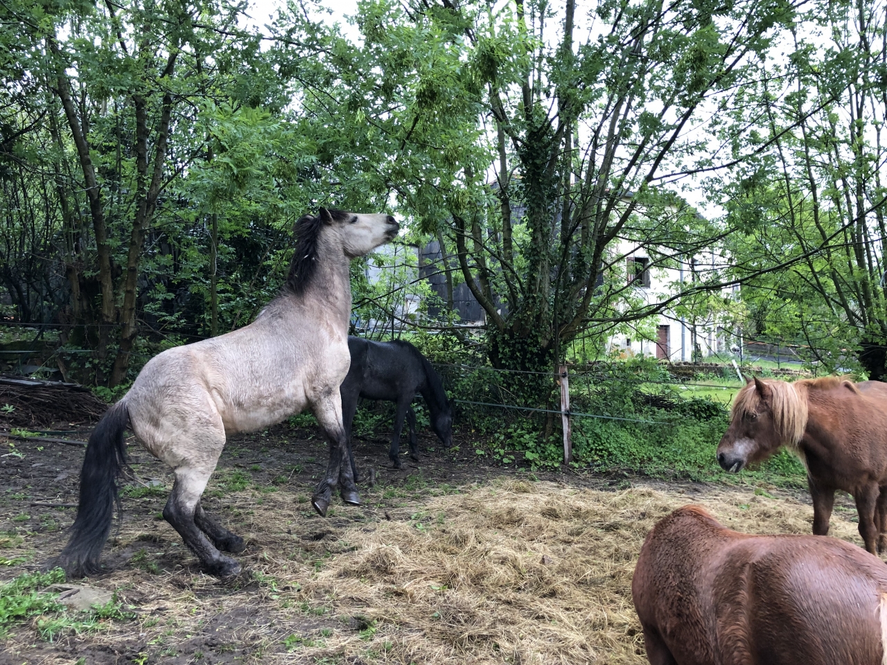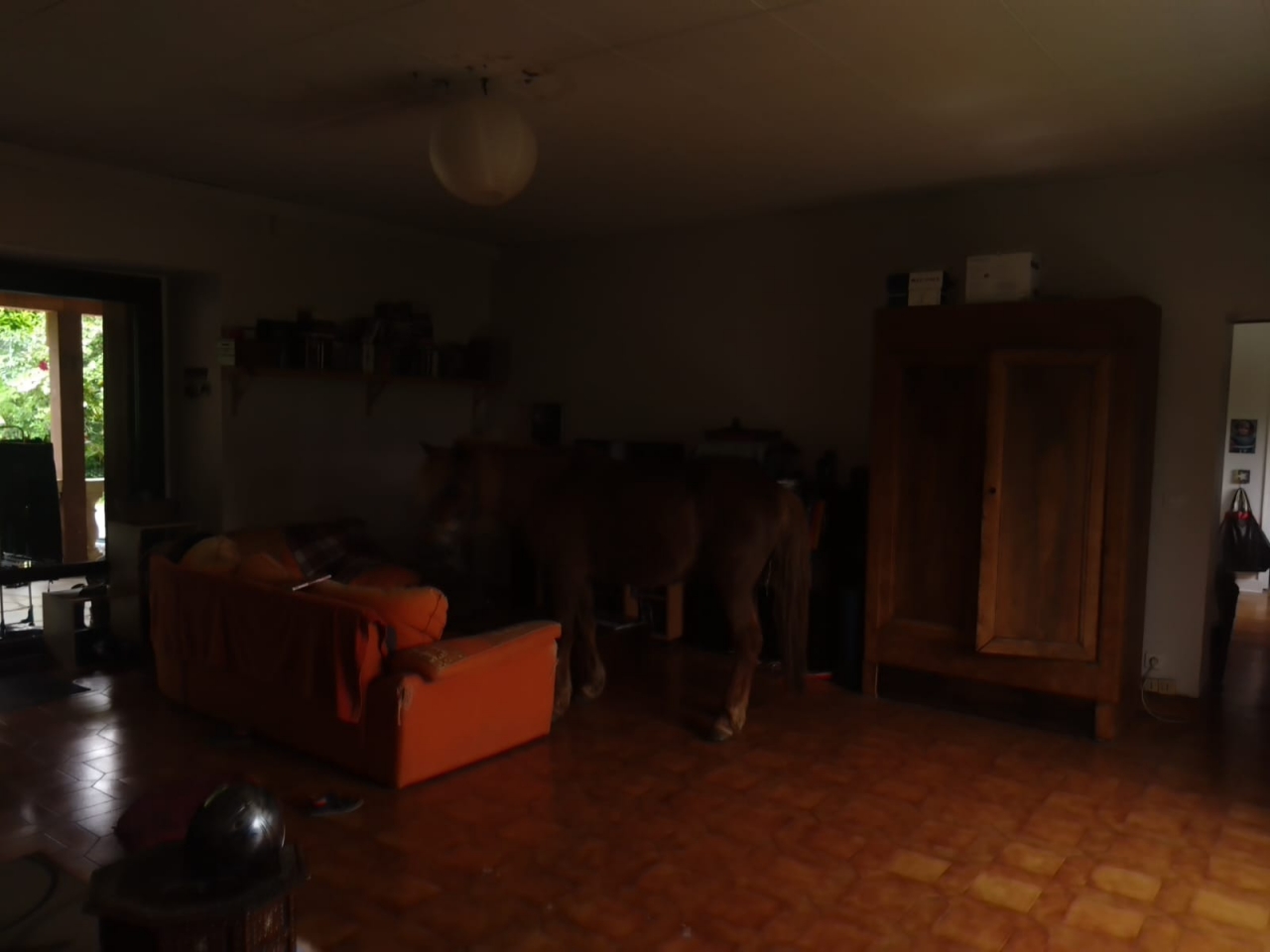 | Dire merci | Et puis hier, surprise !!! Voila des années que les poneys viennent dans le jardin au printemps quelques après-midi. Betty adore venir mettre les antérieurs sur les marches et me regarder passer l'aspi; ça la fascine Mais hier, les enfants sont venus me voir alors que je passais la débroussailleuse au pré des chevaux : "Maman, Maman, y a Obi qui est rentré dans la maison !!!!!" Mais WTF ![]() Bon la photo est sombre mais bon ![]() ![]() Et du coup, il a bouffé toutes nos pommes un carnage !!!![]() Mon grand avait un copain à la maison, il s'en est pas remis ; je pense que ses parents vont nous prendre pour des fous Les poules étaient déjà rentrées, notre chèvre (décédée maintenant) s'était une fois couchée sur le canapé, mais les chevaux jamais Mon homme me dit qu'on a touché le fond |