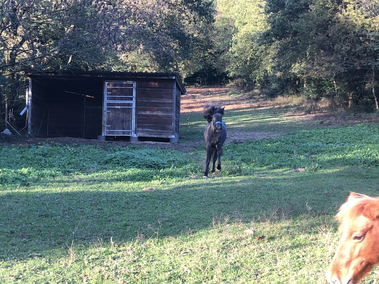 | Dire merci1 | Wouhou je me sens rajeunir, voilà que je refais un post photo après des années de plongée sous-marine ! Mais ma vie cheval a été chamboulée depuis quelques jours , alors voilà l'envie qui me vient de partager tout ça avec vous !!! J'espère que j'arriverai à donner des news régulièrement, mais c'est pas garanti Mon post d'intro sera un peu brouillon, j'ai des tonnes de photos super mais pfiou difficile de tout retrouver entre PC, disque dur, téléphones... Pour commencer, plantons le décor : ma maison en rouge, entourée de vertes pâtures, ça c'est mon paradis ! ![]() Dans ma famille, il y a 2 garçons plein vie qui m'enchantent, pas très branchés cheval, mais néanmoins, ils aiment profondément nos chevaux, car ils font partie de notre vie, de notre quotidien, de notre famille. Donc, dans la famille, il y a aussi et surtout mon gros Réglisse, 19 ans, mon poney adoré à mes côtés depuis 17 ans, une crème ![]() Un bucheron hors-pair ! ![]() Un cheval de spectacle à ses heures perdues ![]() Il est accompagné de Obi le trentenaire grincheux mais toujours en forme et de la délicieuse Betty Boop, une shetland fantastique adorée par mes garçons, un concentré de gentillesse et d'espièglerie, toujours prête à faire des trucs avec nous ![]() Tout ce petit monde a la vie dure ! ![]() ![]() Et pour finir, mon bonheur - qui fait maintenant partie de la famille, la raison de mon retour ici et l'occasion de vous raconter nos aventures, la petite nouvelle Vous la connaissez bien : il s'agit de Nakara, fille de Chuck que j'ai toujours admiré sur ce forum. Après une visite concluante cet été, de longs mois d'attente pour que la miss grandisse sereinement, la voici chez moi depuis 4 jours pour notre plus grand bonheur. Un grand merci et un grand bravo à Nélimiha1bis pour son travail d'éleveuse ! J'ai tellement envie de vous partager tout ce que l'on va vivre !La rencontre cet été ![]() La miss à son arrivée dimanche ![]() J'ai déjà tellement de choses à vous raconter ! Message édité le 10/04/24 à 22:58 Message édité le 10/04/24 à 23:11 |