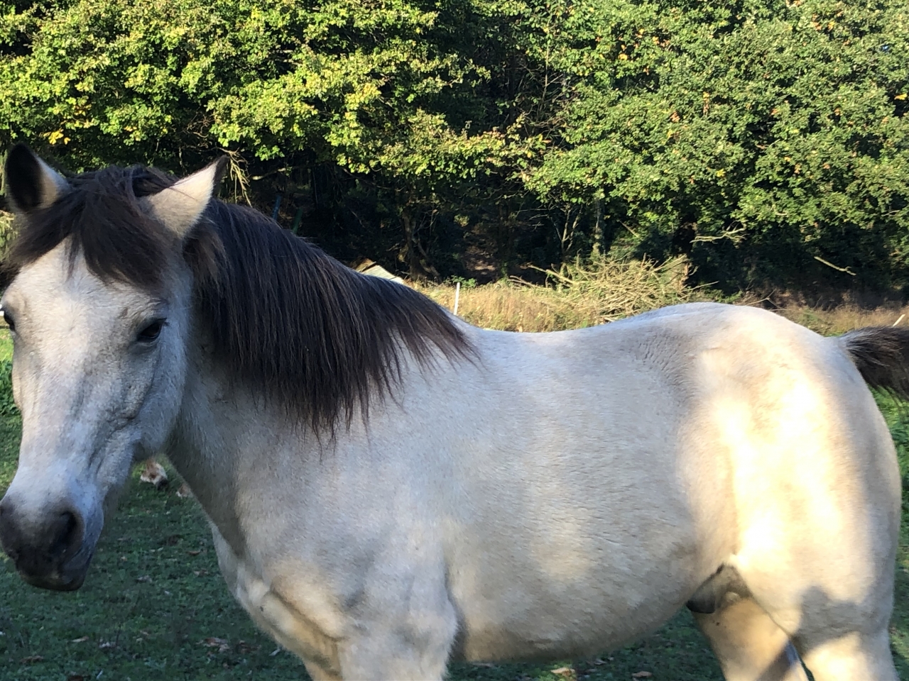 | Dire merci | Donc, la bêtise .... En rentrant Betty au pré après sa journée Halloween, il commencer à faire sérieusement sombre et Nakara en profite pour sortir du pré. Elle monte sur la petite route. Le temps d'enlever le licol à Betty et de refermer le pré, de remettre le jus car Réglisse s'énerve un peu de voir partir Nakara - il a bien compris que ce n'était pas normal - , je ne vois plus Nakara dans le noir . Je retourne à la maison chercher un licol et un peu de grain pour récupérer ma fugitive. Je redescends sur la petite route, évidemment les voisins l'ont vue et étaient en train de m'appeler (je sais que mes chevaux sont bien gardés ). Mais entre-temps, elle était en train de revenir à la maison où je l'ai récupérée. Evidemment, la dernière chose à faire c'est de la gronder, donc elle a son licol, un peu de grain. Je la remets au pré et petite leçon : je reste devant la clôture un peu entrouverte, au moment où elle essaye de forcer le passage, un non, j'agite la clôture, elle recule, je laisse encore la clôture un peu entrouverte, elle force à nouveau, non !, j'agite la clôture, elle ne recule pas, je la touche avec la clôture, elle a compris je préfère ça à l'échappée de nuit ; parce que j'ai eu sacrément peur. |