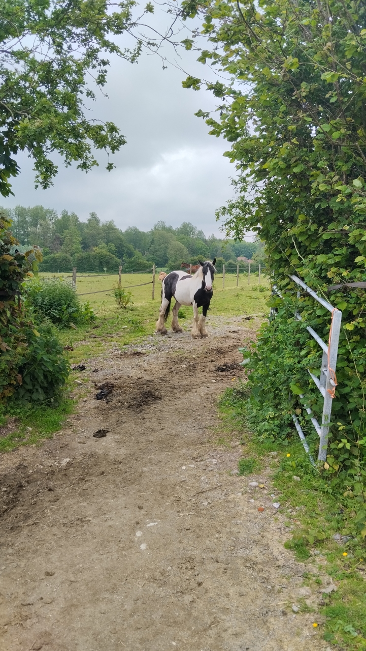 | Dire merci | Je rigole parce que j'ai vu la porte avec les yeux de Cawr et j'ai dit" c'est dur comme porte" rien de déconnant à ce qu'elle appréhende avec le manque de visibilité sur les côtés. A la base, je m'imaginais une porte en rubans électriques d'ailleurs. Je vois qu'il y a un beau massif d'orties (ou autre) près de la clôture. Est-ce que tu as d'autres monts de végétaux comme ça dans la pâture ? ça peut faire office de fausses portes à passer, tout en ayant une bonne visibilité au loin, et ça peut être intéressant d'y associer un code vocal comme "passe" > bonbon, pour aider pour le portail |