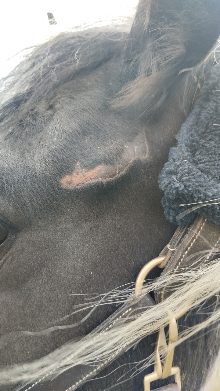 | Dire merci | La porte en question : ![]() Et je sais qu'elle la passe puisqu'il faut la passer pour aller à l'abreuvoir et pour aller aux rateliers. Et je pense qu'elle s'est coincée dans un ratelier vu ses blessures (Elle en a des deux cotés et sous le toupet) ![]() |