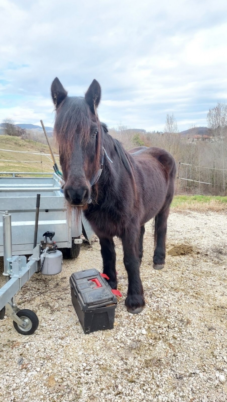 | Dire merci1 | Et voilà, c'est fini....![]() (photo printemps 2022) Kéfir de Fantilhou nous a quitté il y a une semaine, il est parti rejoindre son pote Lomé au delà de l'arc en ciel, j'espère qu'ils sont heureux de s'être retrouvés, pour de belles galopades dans des prairies toujours vertes. Il avait 26 ans. Il m'a fallu un peu de temps pour trouver la force de faire ce post, j'ai encore du mal à réaliser. 21 ans de ma vie avec mes chevaux, à organiser notre quotidien en fonction. Surtout ces derniers mois, où son état se dégradait, du coup, son absence est d'autant plus pregnante. Sous le préau, il y a les seaux, les boîtes de pellets de fourrage prêtes à réhydrater, sa malette, le licol et la longe... Je passe devant tous les jours. Nous n'avons pas encore remis en place la clôture, déplacée pour que le camion final puisse l'emmener pour son dernier voyage, chaque matin en partant au boulot, puis chaque soir en rentrant, l'herbe couchée me saute aux yeux, je sais qu'il faut que j'aille remettre les choses en place, mais je n'y arrive pas... Mon mari non plus... Mardi dernier, le vétérinaire de la clinique équine est venu, pour les vaccins, et évaluer l'état de Kef afin de mettre en place le traitement. Nous pensions qu'il avait un cushing, cependant, le bilan réalisé un an plus tôt n'était pas significatif. Mais ces derniers temps, les symptômes s'étaient accentués, et je n'arrivais plus à le garder en état acceptable. Sa maigreur des derniers temps faisait peur. Le véto l'a effectivement trouvé bien amaigri, trop évidemment, ce n'était pas une surprise pour moi. J'avais demandé un bilan complet. En 45 mn, il l'a examiné sous toutes les coutures, ausculté, Kéf s'est gentiment laissé faire, même quand il lui a mis le pas d'âne pour s'occuper de ses dents. Usées, branlantes pour les molaires du haut, avec des manques. Des pointes acérées qu'il a limées, afin qu'il puisse mieux manger. Un bilan sanguin 15 paramètres a été effectué, et un prélèvement pour doser l'ACTH. Plus une copro, Kéfir ayant eu la bonne idée de crottiner en sa présence. On a parlé de l'alimentation que je donnais, que j'avais un peu modifié depuis une dizaine de jours, avec un volume plus important, et l'ajout de pulpe de betterave, de luzerne, de son, de levure et d'huile. Il a trouvé que c'était bien, m'a dit de continuer ainsi, Kéfir mangeant volontiers le contenu de son seau de bouillie. Je lui ai donné sa dernière soupe vers 20 h ce soir là. La dernière fois qu'il est venu au paddock, c'était à 23h, je le sais car la caméra de surveillance a capturé son passage. Ensuite....il n'est plus remonté. |