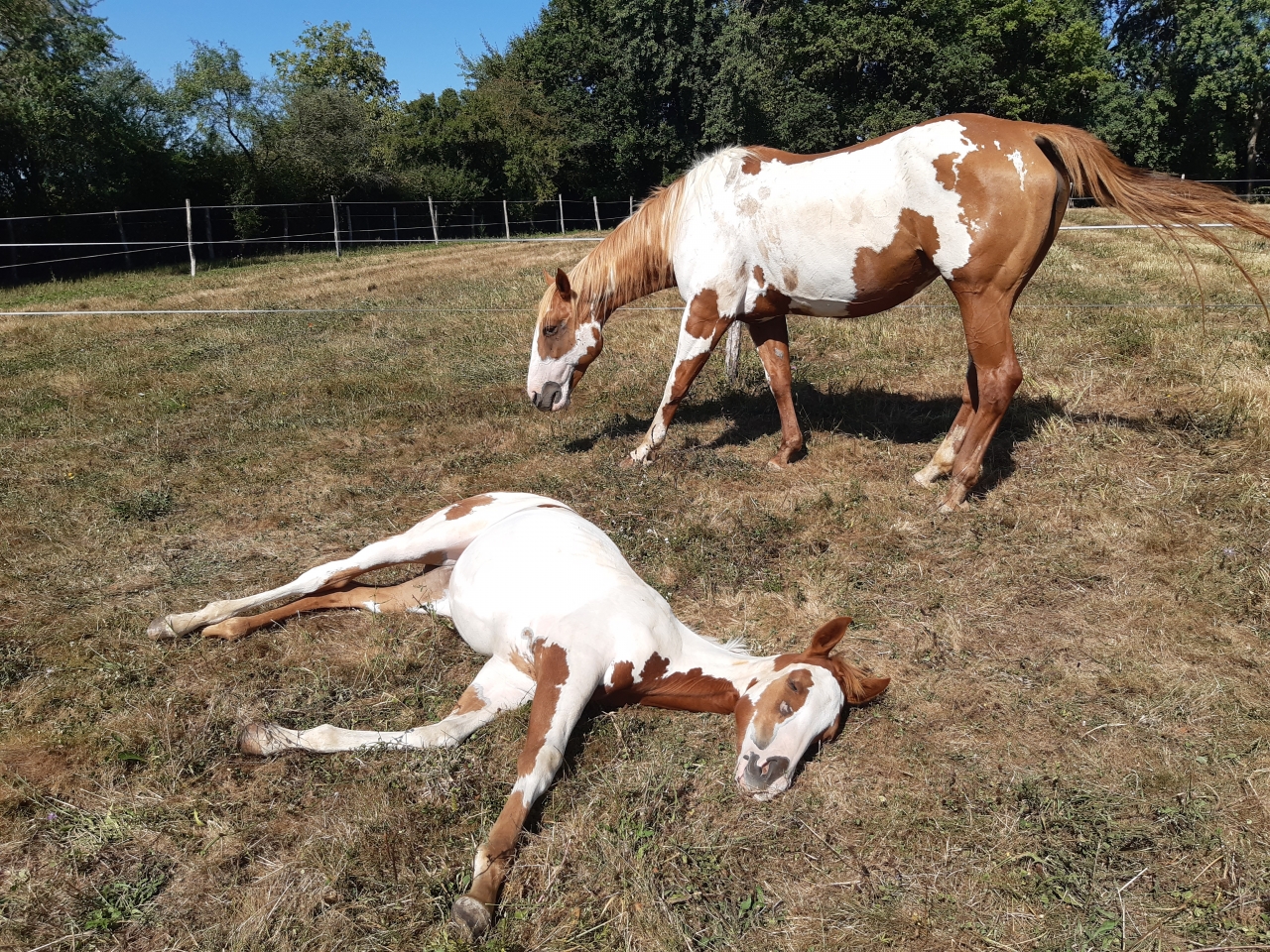 | Dire merci | Plein de pensées pour Ayéla. C'est toujours terrible de les perdre, amis quand en plus c'est ce genre de cheval qui sont comme un socle dans nos vies, c'est d'autant plus dur de se relever ![]() Je te souhaite plein de bonheur avec ta pouliche. C'est marrant comme son marquage donne l'impression qu'elle a comme une balzane inversée à l'antérieur droit ! content aussi d'avoir quelqu'un de plus dans le club des possesseurs de paint horse : j'adore tellement le mien même s'il des côtés extraterrestres et une santé pas ouf, ça reste un des plus gentils et des plus câlins que j'ai jamais rencontrés |