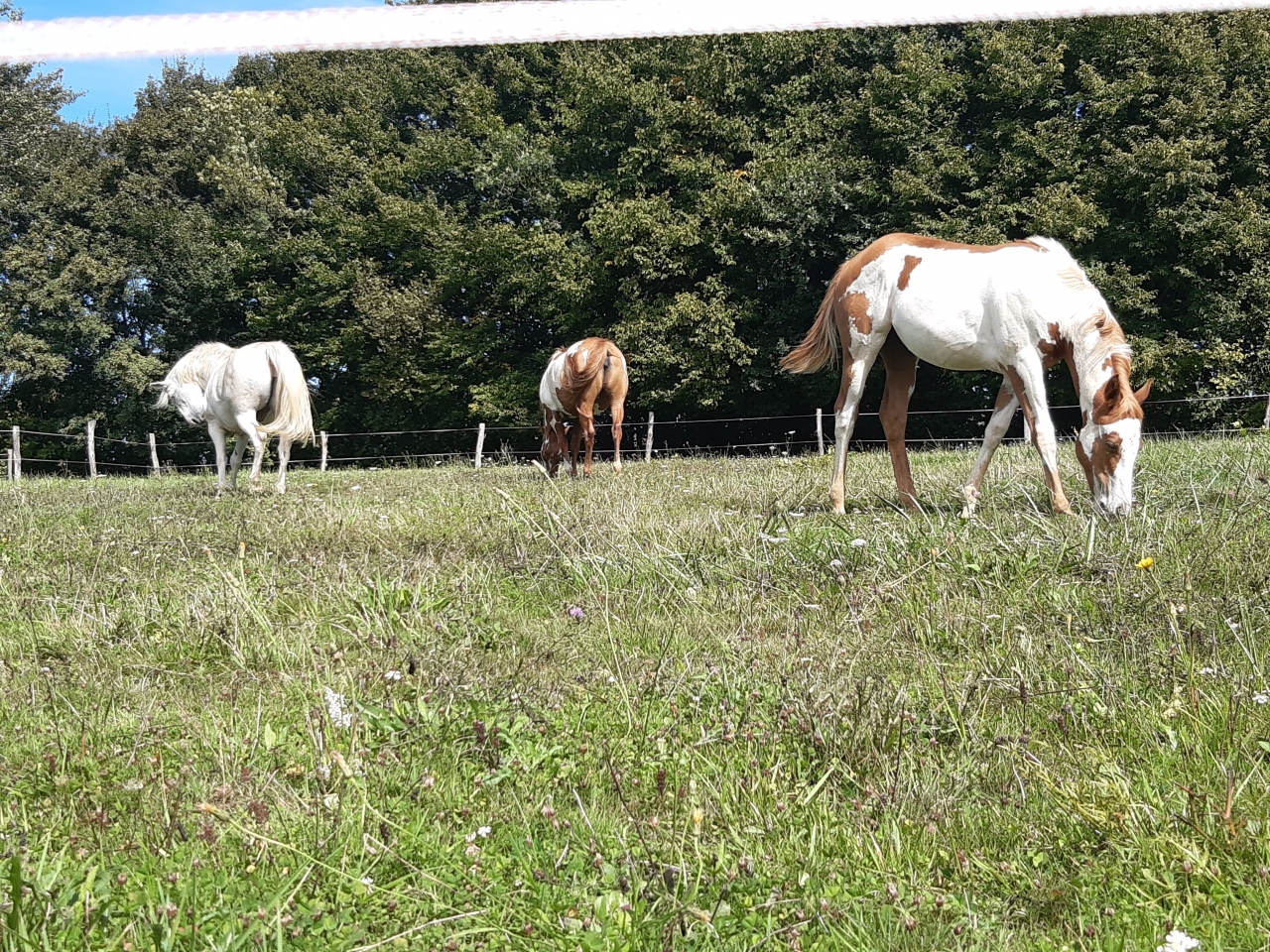 | Dire merci | Il y a une dizaine d'années que je n'avais pas replongé dans les divers post de ce forum .. J'avais ma petite routine, vie de famille, travail, travaux d'écurie. Mais aujourd’hui, j’ai envie de partager cette nouvelle aventure, et surtout, j’espère trouver plein de bons conseils.. Par où commencer ? • 2015 on déménage ! Je quitte le Jura pour la Bresse, évidement Ayéla est de la partie ! On s’installe dans une toute petite pension (nous sommes 2 pensionnaires + les proprios … 6 chevaux …) de chouettes balades, quelques sorties… notre nouvelle routine est bien plus calme ! Même si parfois, je suis un peu nostalgique de notre ancienne vie ! Le rythme soutenu des spectacles d’été, la saison des débourrages à l’automne, les hivers de répétitions, les poulinages de printemps… Tout ça est loin derrière nous… • 2020 on RE déménage ! Je trouve mon petit coin de paradis, une parcelle à l’abandon depuis presque 10 ans, des arbres, des haies, des ronces, beaucoup de travail… Mais aussi un rêve de gosse, celui d’avoir mon cheval à côté de la maison ! Après une grosse année de travaux, et merci le COVID pour tout ce printemps de confinement 😉 Ayéla et son demi frère Uyelo s’installent à la maison … je passe encore moins de temps à cheval, prise entre les travaux et la vie de famille, mais c’est un autre plaisir, une relation différente, et fil des années, mon petit bout de terrain en friche devient un petit paradis à poney (mais ça, ça pourrait être l’objet de tout un post !) • 12/12/24 : Ma vie bascule. Ayéla, ma complice, ma guerrière, elle qui m'accompagne depuis tant d'années succombe à des violentes coliques. Deux journées de cauchemars, et alors que nous sommes rassemblés pour la soulager au mieux, mon papa, mon fils et moi, ce cœur si généreux, si guerrier n'en peut plus de lutter. Ma princesse s'écroule. Uyelo se retrouve seul, lui si imperturbable est totalement désorienté. Pendant plusieurs semaines, je suis prise par le chagrin, l'inquiétude de le voir si chamboulé, le besoin de comprendre... et incapable d'envisager l'idée de reprendre un cheval. |