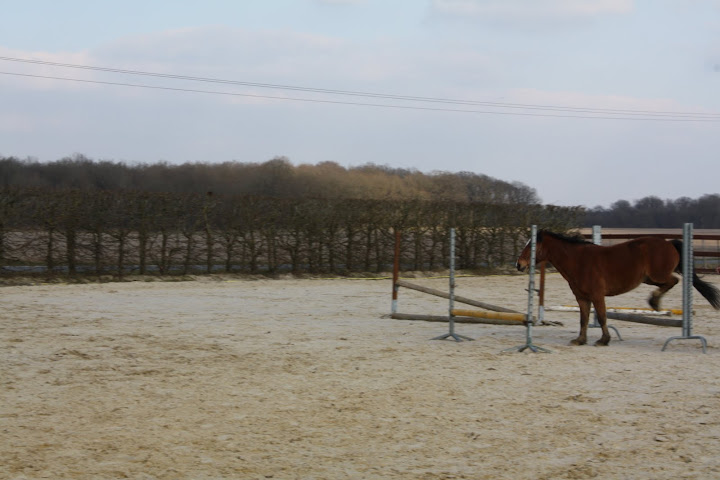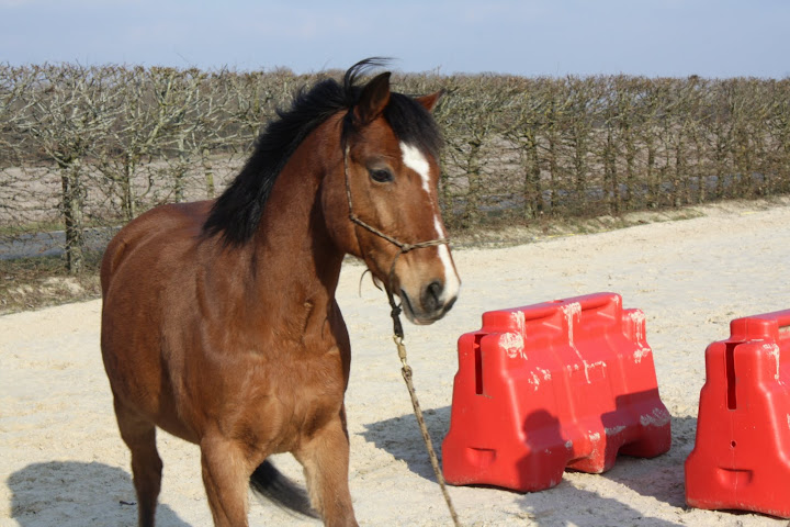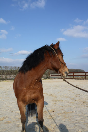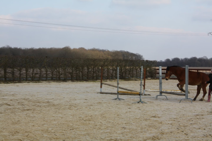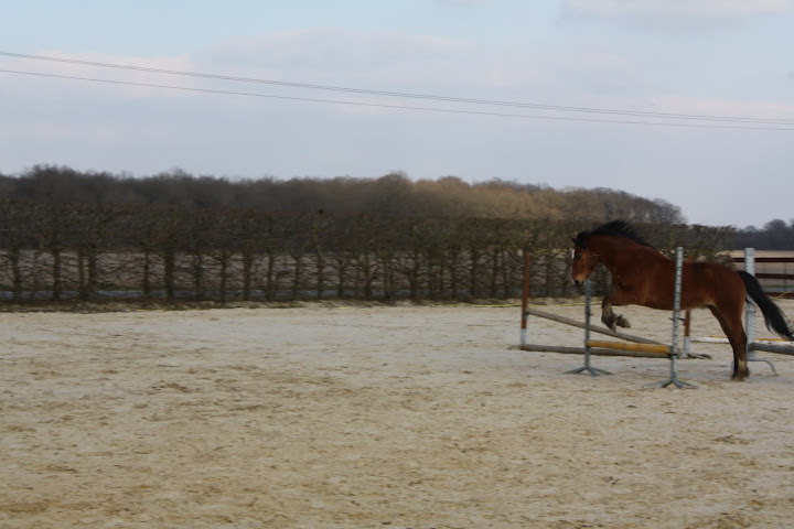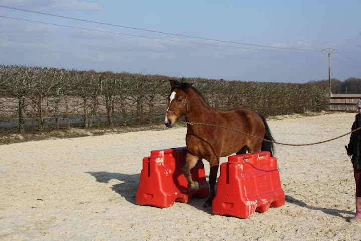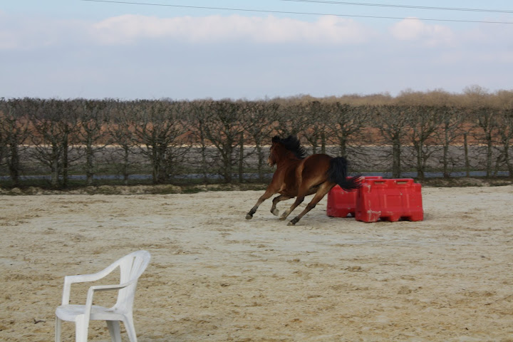 Déconnecté | Des ptites nouvelles, pour les 3 fidèles de mon post Kenny va bien, enfin, y a un truc qui me tracasse, c'est qu'il tousse en début de travail, parfois, depuis 3 semaines. Et aujourd'hui, il a toussé (devant moi) au repos. J'avais appelé le véto qui m'avait dit que si pas de jetage, ni de fièvre, ni d'accentuation de la toux, rien de grave, mais comme ça continue, je pense le faire venir. Hormis ça, il va super bien ! On fait notre premier trec dimanche, à St Yon... Croisez les doigts pour les Zazies Mutées ![]() Photos de notre séance de samedi, le stick to me marche moyennement mais mieux qu'avant. Après Kenny fait un peu ce qu'il veut comme il veut genre : aller sauter un oxer de 90cm à l'envers alors que c'était pas du tout ce que je voulais qu'il fasse. Mais bon, ça me fait plutôt rire ! Belles fesses " Ca a l'air plus intéressant par là-bas... Hum Hum" |