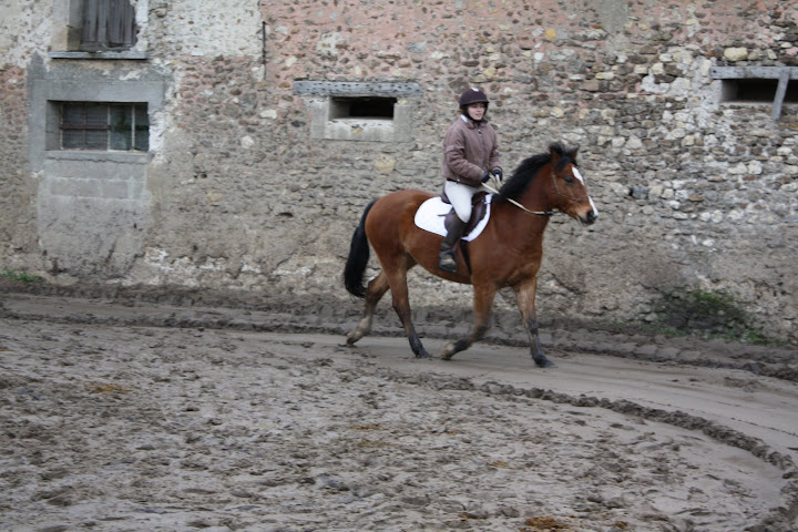 Déconnecté | Douuuuucement Kenny, on n'est pas à Longchamp, je te rappelle qu'on doit faire le galop le plus lent, pas le plus rapide !! On aperçoit micie au loin : Arrivée sur le PTV : N°1 : bordure maraichère, en sortie de coin et un beau bidet à l'entrée, en bref, pas évident à prendre au galop, on le fait au trot. D'ailleurs on voit bien Kenny regarder ce fameux bidet... N°2 : mania. 0 souci, je lui dis "doucement" à l'entrée et là il ralentit bien son pas. Bravo poney ! N°3 : Passage de sentier - deux petits tronc à sauter et une cuvette au milieu. Je crois faire une faute car entrée au trot puis il prend le galop dedans, mais non, c'est autorisé !! Il me prend la main car il y a un autre tronc en sortie, à 3 foulées, mais nous ne devons pas le sauter "DOUUUUUUCEMENT !!" Et lui : "Tayautttttttttttttttttt " |