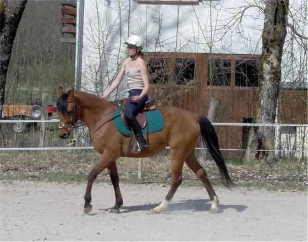 | Dire merci | Bon je vais donner mon avis de fille qui n'y connait pas grand chose en endurance je travaille plutot sur le plat. Personellement j'ai beaucoup travaillé l'engagement, l'incurvation, les transitions.. Tout ca avec un vrai contact, et Caïda a fini par descendre seule.. Ca ne s'est pas fait en trois scéances c'est sure, mais quand elle a été prête elle m'a donné ce que j'attendais. La j'ai l'impression que Quiara n'est pas prête a se mettre en place, elle comprend qu'elle doit baisser la tête mais peut etre pas qu'elle doit la garder dans cette position et ne peut peut etre pas encore. J'imagine que la pro la travaille avec plein d'assouplissements non? Ca ne pourra lui faire que du bien! Je ne fais pas d'endu mais pour moi le travail sur le plat a tout changé en extérieur! Les allures sont bien plus agréable, elle est plus équilibrée.. Et elle est bien horizontale a l'extérieur ^^ |