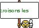 | Dire merci | Non, non ! on est là et on est en forme (enfiiin ... en ce qui me concerne !) !En forme pour un partiel d'informatique ... yahooo !Vivement que cette journée et toutes celles des 2 prochaines semaines passent vite ![]() ... car après, c'est vacances !!! Une année pourrie de terminée, un été top-méga-génial qui s'annonce ! |