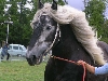 | Dire merci | Pfuff, c'est du beau! Vous êtes allées voir Harry? Je devrais bosser plus avec Réjane, mais le peu que je fais avec elle se passe plutôt bien... Par contre, le petit bout de longe me sert bien, parce qu'il n'y a qu'en faisant "hélicoptère" avec qu'elle comprend qu'il faut mieux se décoller un peu!! Là, on s'entraine au slalom en main... ça vient doucement doucement... C'est pas une rapide question compréhension! (comme sa patronne!! )Ya eu des photos de prises hier? |