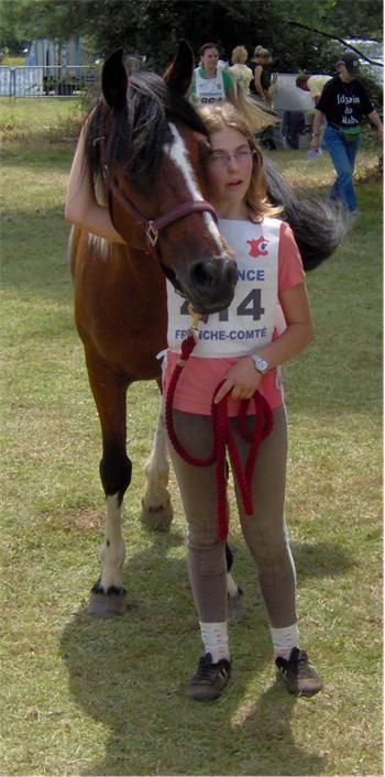 | Dire merci | Ce WE avait lieu le Raid endurance de la Loue à Cessey (25). Au départ : Malika en CEI** sur 130 Km qui nous a avalé ça comme les grands habitués des courses d'endu Audrey a donc terminé 8° et 1° des amateurs Princesse a assuré ses 60 Km sous la chaleur, sans problème particulier, menée tranquillou jusqu'à la fin. pas de photos...Avec Julie, nous avons fait une 40 Km avec Hermine et Haïfa. Au paddock, Haïfa a voulu faire comprendre à Hermine qui était le chef Résultat : Hermine se retrouve avec une bonne entaille sur l'épaule . Le véto nous a tout de même autorisé à partir. |