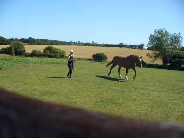 | Dire merci | Allez, zou, au travail!![]() On bosse les changements de main... ![]() Les arrêts... ![]() Et on attaque le trot! ![]() Bon en fait le trot, on a eu une petite phase de trimbalage, mais c'est résolu depuis. Il commence à vraiment être bien aux longues rênes là. Prochain coup je lui met la sellette d'attelage. Ca va remonter les anneaux encore d'un niveau, donc j'attends qu'il s'y habitue avant d'ajouter le reculement. Mais ça vient... Et pour l'attraper au pré, ça commence à aller mieux aussi. Je le choppe de plus en plus vite. je pense qu'il commence à se dire que ça sert à rien puisque je l'attrape à chaque fois. |