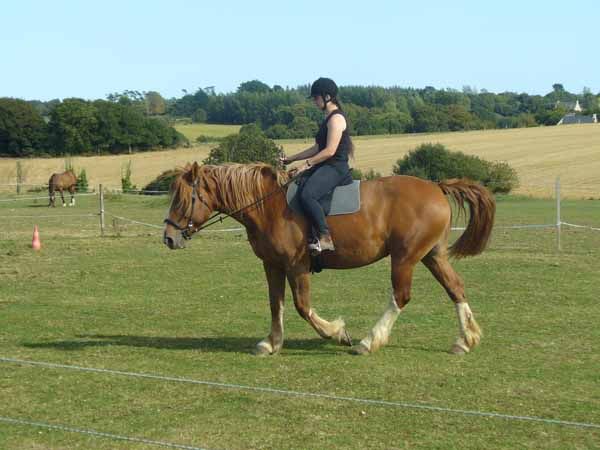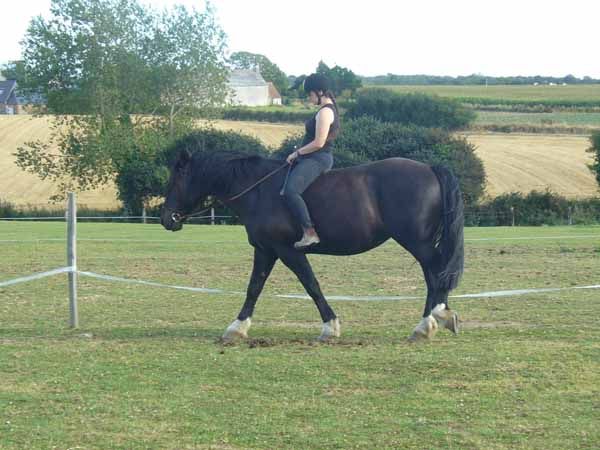 | Dire merci | Bah ouais, la balade c'est plus ludique... mais on la sent quand même pas très dressée. Ca zig-zague, les allures sont hachées, etc... Enfin c'était le cas au début, ça va nettement mieux là! ![]() A côté de ça, le plat c'est juste un machin chiant auquel elle comprend rien! Enfin pareil, ça s'améliore ça aussi, elle commence à piger et on arrivera p'têt à lui faire trouver ça moins chiant. ![]() Par contre pour Java, j'ai aucun espoir, ça la fait braire, point barre! mais elle est chouette aux longues rênes par contre. |
