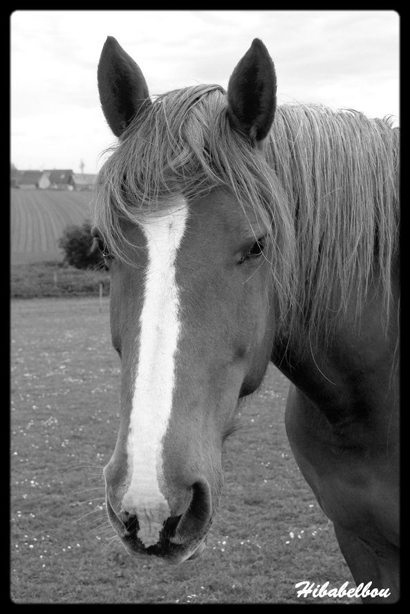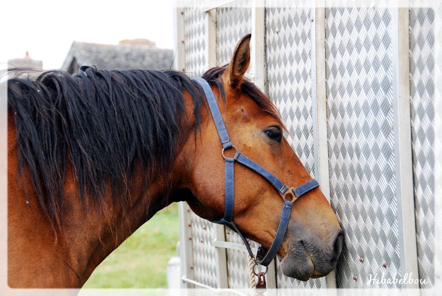 | Dire merci | Quand on tape dessus, ça fait des vagues! Mais c'est pas du gras, c'est de la rétention d'eau, m'enfin ! Il a une de ces trognes ce cheval ! |