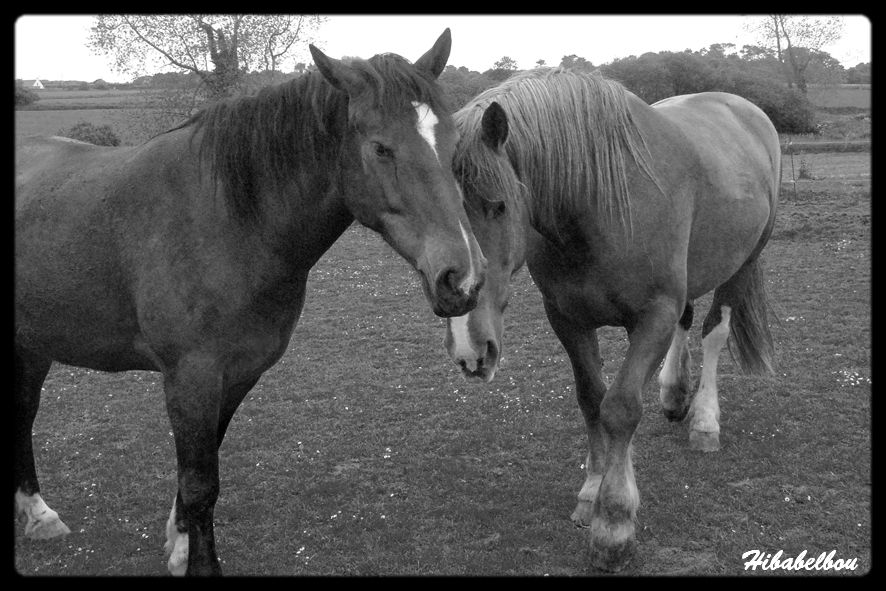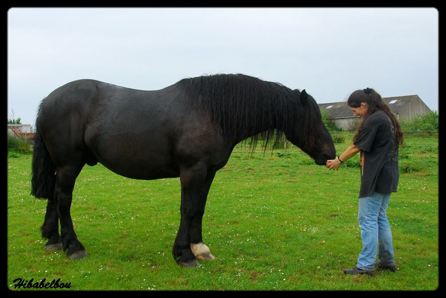 | Dire merci | Bon à force de ne causer que de Poupounet, on oublie les autres. ![]() Donc Choupette va aller au débourrage à l'attelage du côté de Quimperlé, ce sera plus simple et plus sûr. ![]() Et sinon, J'ai honteusement exploité l'image d'Oligo pour vendre des T-shirt touristiques. ![]() ![]() ![]() Pas cher, pas cher. ![]() Bon après, tant qu'à y être, j'ai bossé un peu Oligo. Enfin au début, ça a été un peu chaud, j'ai pris les rênes et pouf, il est parti moitié au galop, moitié en sauts de moutons! ![]() Il me l'avait encore jamais faite celle là... Ensuite il a été mignon: ![]() Bien sûr, les commères critiquaient au bord de la carrière... "Pfff t'as vu? Moi aussi je peux le faire!" ![]() On s'applique quand même: ![]() ![]() Je vais essayer de le reprendre sérieusement aux longues rênes ce mois-ci. Il a besoin d'un peu de recadrage le gros. Déjà en main, pour l'amener au pré, le ramener au box, j'ai profité de cette semaine où je m'en suis occupée pour resserrer un peu la vis. Ca lui fait du bien et il ne demande que ça en plus. il est vraiment mignon quand il sait qu'il a un cadre strict, je pense sincèrement que ça le rassure et qu'il est content. Et d'ailleurs, il fait toujours preuve de beaucoup de bonne volonté dans ce cas. |