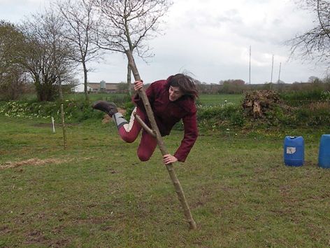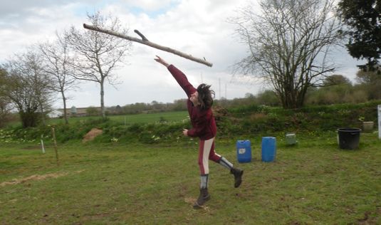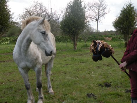 | aujourd'hui... un peu de saut! enfin, saut, c'est un bien grand mot: un fagot, deux bouts de bois et deux poubelles Et puis Kim s'est transformé pour l'occaz en poney éthologique très appliqué! Par contre, la photographe maitrisait pas trop l'appareil, donc juste une photo et une vidéo  Pour une fois que j'ai pas TROP la honte sur une vidéo de moi à cheval
