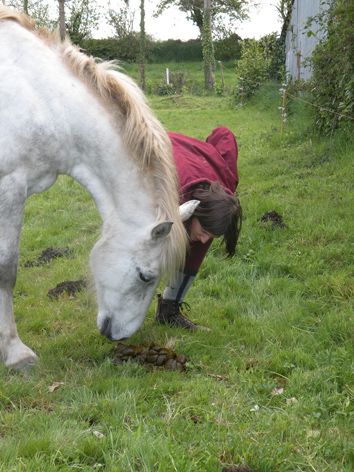 | " Hummmm, moi j'aime touiller le caca de poney! Oh regarde, il reste des morceaux dedans! Miam!"