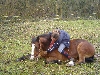 | Dire merci | Aller ça y est je suis reviendu Donc AVANT TOUT...soqutte REJOUIT TOI...pilou a bien écouté tes conseils il m'a pouvé qu'il sait être une tête de mule à toute épreuve et un sacré petit couillon (j'ai l'impression de parlé de cactus là )DONC...la première balade en solo à soulevée une remise en question ... le pilou a été GRRRRRR donc commençont par le comencement...à la préparation nikel...sauf les bestioles ... ensuite on part et on traverse la rivière...il a hésiter un chouilla et y es allé...je déscends et passe à pied le petit pont qui mène au canal,on croise 2motos et une voiture,un campign car et nikel il bouge pas...puis à l'entrée du canal je monte...pilou suit les gens qu'on croise et je me fais arrêter tout les 30m pour entendre "mon dieu qu'il est beau"...ce qui fait TRES plaisir mais le pot de colle qui me sert decheval après LUI veut plus décoller mais bon ça se passe quand même...il est hésitant et j'ai besoins de jambes mais ça a on trotte même un peut...et soudain au 2/3 du canal Mr fait mine 'avoir peur d'une herbe j tente de le faire passer...puis comme il ronflait et tout je déscends et va lui faire sentir...là Mr sent 2sec et broute j remarche un peut à pieds 10m et remonte...et LA...IMPOSSIBLE de le faire avancer...il était PLANTE là et j'ai TOUT tenter pour le faire bouger...RIEN...voix,talons,cravache,tourner...NADA...je suis restée bloquée 10min et j'avoue m'être sentie totalement démunie,je ne voumais pas le laisser gagner mais RIEN n'y fesait...et c'était pas par eur DU TOUT c'était juste par ce que Mr avait décidé que ce balader seul c'était pas drole ...Donc 10min plus tard je déscends et avance un peut,il me suis sans aucun soucis...je remonte et là MEME cirque j'en aurais fais du paté et je vois au loin 2 prommeneurs arriver...je profite donc de la sociabilité de pilou pour avancer qu'il aille les voir...ça fonctionne...VICTOIRE il avance...et avant d'arriver aux gens je fais demi-tour,j'avais ce que je voulais...j'avais pas cédée...*** |