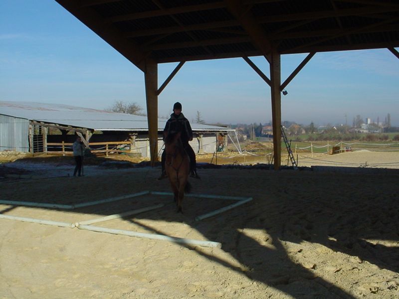 Déconnecté | ah c'est cool les photos; on se rend mieux compte de se que sa donne ! c'est pas mal ce petit parcours de maniabilité ! roooo la barre est ricici là ! En tout cas je remarque que pilou a lui aussi un beau geste, il pli bien ses anterieurs, monte bien son dos et regarde bien la barre ! ![]() C'est vrai que pilou a pas du tout l'air casse pied ou boeuf avec les autres chevaux ... SOQUETTE pour le fait de pas vouloir bosser dans le boulot ou d'être trop speed (il embarque pas pitch ) sa n'a rien avoir avec le comportemment en groupe ... c'est plus le fait que ce sont de jeunes chevaux pas encore bien mis dans le travail d'ou les moments ou ils sont biens et d'autres pas . Et moi pitch hormis la 1ere leçon ou il etait perturbé par tant de changemment sinon les cours maintenant se déroulent super bien |