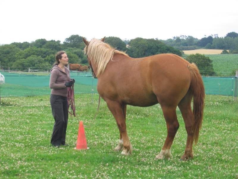 | Dire merci | Pas faux... sauf que tu as du bol, parce que 10 min après, il avait les crins des deux côtés! En fait, les deux ont la crinière qui tombe plutôt à droite, mais celle de java se met plus vite de part et d'autre... sauf que celle d'oligo le fait aussi! Pour les "vraies" différences, en fait c'est assez facile... Oligo se tient toujours courbé vers le timon alors que java est droite. Java a l'encolure plus horizontale en général, elle est plus longue (on voit qu'elle arrive plus près de la voiture qu'oligo), et a le cul plus large et plus carré. Elle a aussi 4 balzanes et oligo, une seule. on voit un peu une balzane de java, sur sa droite, alors que la balzane d'Oligo est sur l'antérieur gauche. Donc voilà, avec tout ça, c'est impossible de les confondre! |