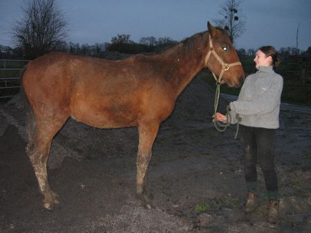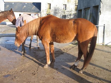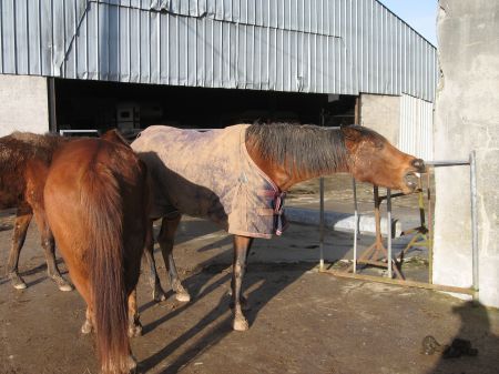 | Dire merci | Mais il a quel âge le petit entier? => 2 ans en février, castration prévue au printemps je crois, ce qui m'a poussée à alerter Emilie du danger que les laisser ensemble représente vis à vis d'Héroïna, la jument arabe de Sarah (Sarah ne veut pas d'une saillie de trotteur sur sa PSAr, et Héroïna est emphysémateuse, raison pour laquelle, d'après son véto, un poulinage serait dangereux...) Avant d'être dangereux, personnellement je trouve ce laxisme irrespectueux, mais après m'en être exprimée auprès de l'une et de l'autre, je les laisse de débrouiller entre elles, parce qu'ouvrir ma grande goule ne m'a que très rarement été profitable, et qu'au final, je ne souhaite pas m'embrouiller avec elles. |