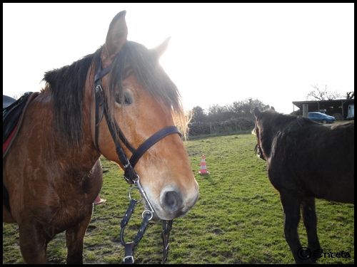 | Dire merci | en fait la carrière c'est dans le petit centre en face de chez moi, c'est là que sont Entela et son gros Kerlo. c'est super c'est à même pas 5minutes à cheval de chez moi, le gérant est super sympa et on peut utiliser sa carrière quand on veut |