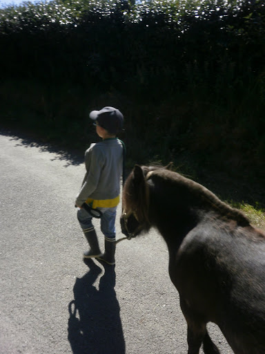 | Dire merci | Début de la vie de "grand" pour Végas qui a été hier en ballade avec pour meneur mon neveu de 6 ans. Loustic très gentils et attentif même s'il était un peu cabot par moment Les deux attentifs aux ordres Ayé, on avance Léger désaccord et nouvelle méthode pour faire tourner un poney Non non, le loulou ne préparait pas du tout une connerie Qui a gagné le combat? Ayé chacun a trouvé sa place .......... Sauf quand y'a de l'herbe |