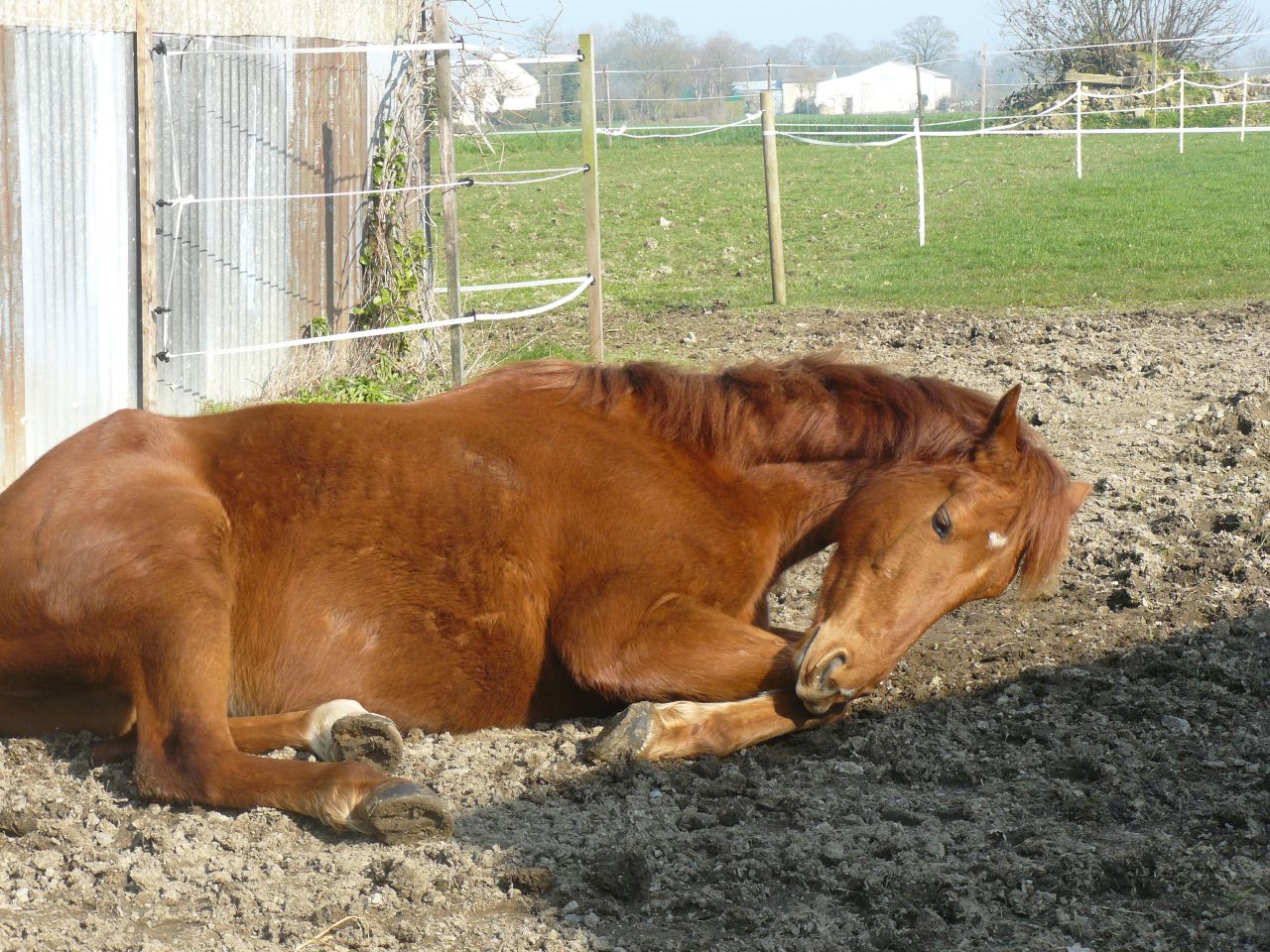 | Dire merci | Ca y est tes loulous démènagent bientot, le pré a l air top!! Susu est une peau de vache grr mes cousins, néophytes, elle bouge pas une oreille et moi, elle me fait un magnifique rodéo. en meme temps, elle n avait pas galoper pleine balle depuis un petit moment ![]() En revanche, elle use ses potes avec ses araignées au plafond moralite : susu aime le printemps |