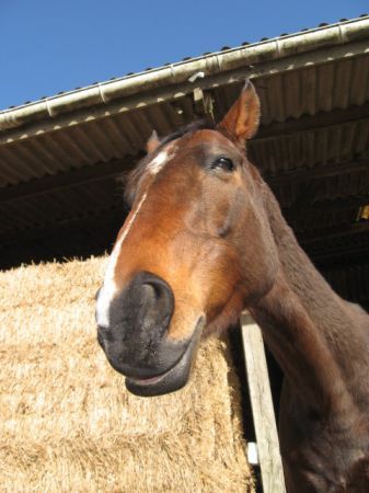 | Dire merci | C'est en partie grace aux longues rênes que t'as résolu le problème ? Parce que moi c'est vraiment ça. Il creuse son dos, nez en l'air et le pire c'est quand il se fout de ma gueule : je demande le trot alors monsieur précipite le pas mais en éxagérant énormément le mouvement de balancier de l'encolure, vraiment comme au trot. Alors la première fois ça m'a fait marrer mais à chaque fois il avait tendance à se foutre de moi. Donc merde, j'aime bien les méthodes étho mais pour la leçon de jambe j'ai rien trouvé encore qui ai pu remplacer la bonne vieille méthode de la cravache derrière la jambe qui j'ai l'impression a été comprise en grande partie. Reste plus que ça devienne un automatisme, le pression du mollet. |