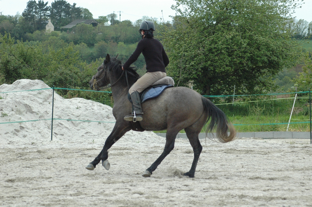 | Dire merci | dogun moi je travaille ce week-end là ! balade bien sympa bien qu'humide ! en tout cas unole et nono semblent plutôt bien s'entendre on a pu rester en botte à botte un moment (bon à un autre unole à voulu tester le botte à botte avec le mur du château ouf y'a que mon étrier qui a pris ^^)après je me suis occupée un peu de kad qui a fait les cents pas dans le champ pendant notre absence ! |