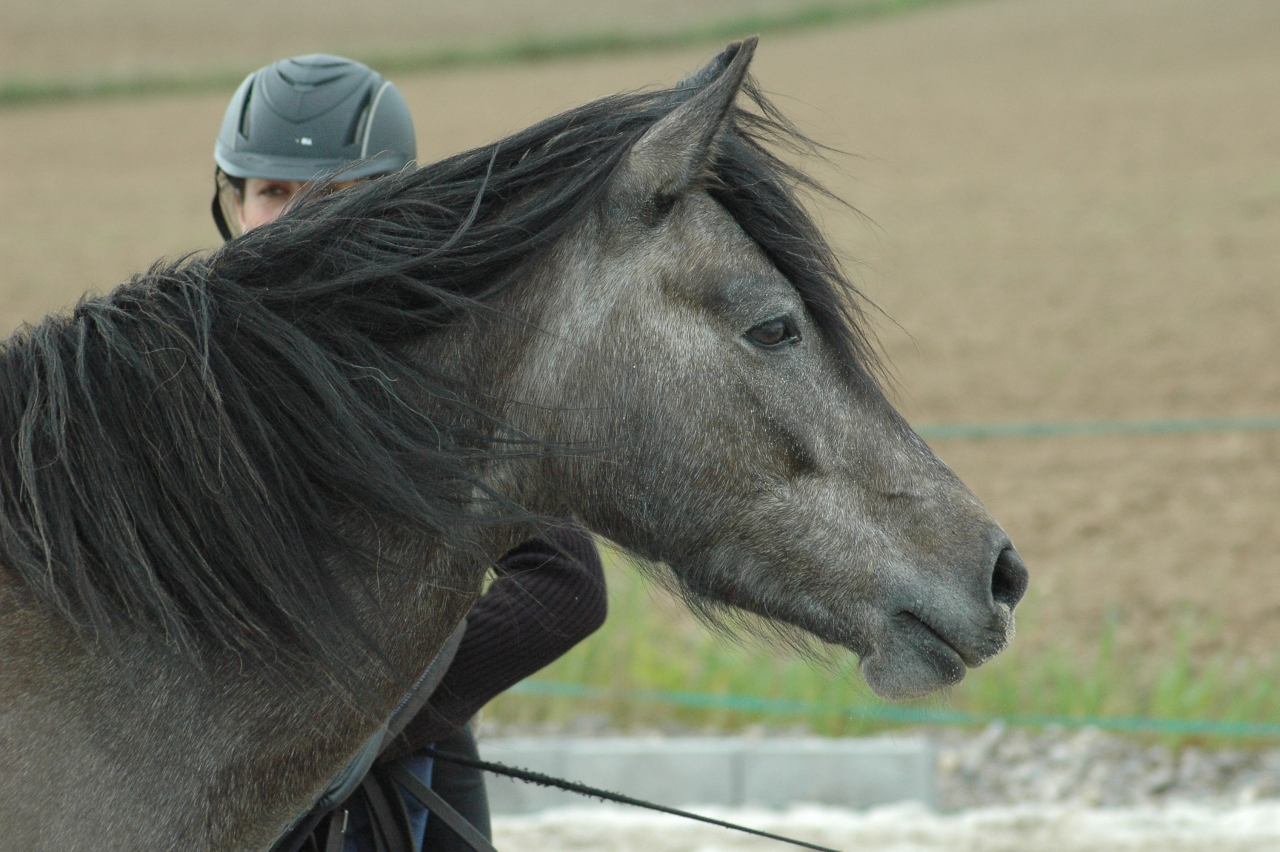 | Dire merci | sympa toutes vos photos ! c'est aslan qui vient au TREC choupi ? j'adore électron ! roller joering c'est sympa mais je ne tenterai pas, a seule et unique fois où j'ai tenté le roller j'ai fini avec 3 semaines de plâtre ici c'était changement de champ hier, aujourd'hui kad c'était transformé un mini tonneau donc balade ^^il était en super forme ça fait plaisir ! et unole a l'air d'être restée tranquille malgré le changement de champ (d'habitude ça la perturbe quelques jours), elle mûrit ! après j'ai soigné le nez d'unole (coup de soleil... enfin photosensibilisation avec les boutons d'or plus probable que coup de soleil pur et dur ^^) et après j'ai ramassé une partie de la clôture de l'autre champ puisque là il va pousser pour l'hiver prochain pusique les génissent vont revenir dans leur champ (par lequel je passe pour aller dans celui des tachus) demain on a cours au kezeg normalement il fait beau en plus ... et unole n'a rien fait depuis le dernier cours de saut mercredi dernier |