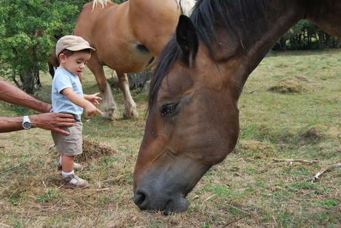 | Dire merci | Chou, c'est clait que le contrast tête de gros cheval/petit bonhomme est excellent !Laurebrrrrrr : Oui, le lardon change un peu en ce moment, faut dire que ces vacances n'ont pas été plus chomées pour lui que pour moi ! Ca doit lui faire bizarre par rapport à l'année dernière, mais la vie de grand n'a pas l'air de lui déplaire puisqu'il vient toujours avec le même entrain quand je l'appelle, et pars toujours volontier qu'on soit en tête à tête ou accompagnés ! Quand au premier galop avec ma Dondon, oui, c'est un moment très très fort pour moi, et une vraie fierté que d'avoir gagné elle et moi contre la fatalité !despe : Oui, Quéké il avait des complexes par rapport à sa soeur, il s'est mis au jaune aline : Oui, et encore, les photos ne rendent pas honneur à toute l'étendue de ses mimiques kagnotte : clau : Tu nous a manqué cette année ! |
