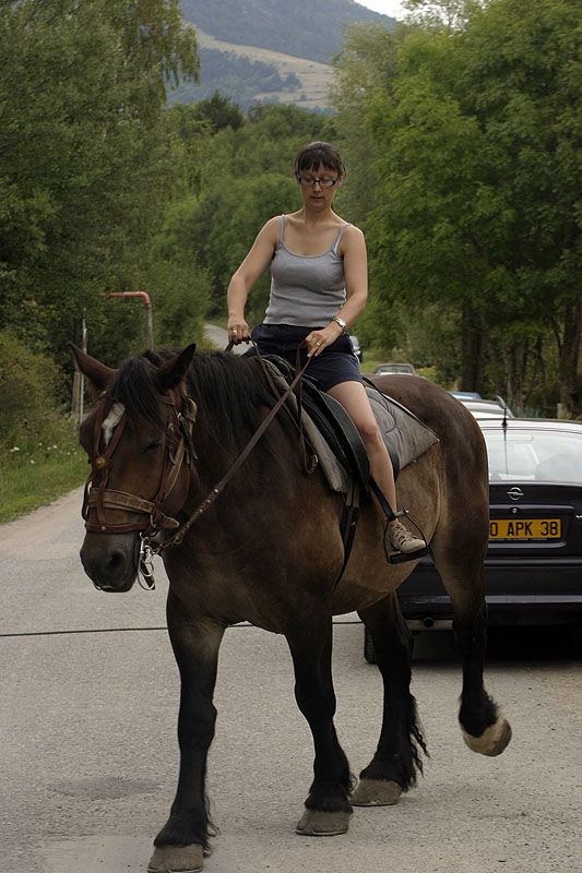 | Dire merci | Tout le plaisir était pour nous ! C'était franchement sympathique de vous revoir et de pouvoir profiter d'une après midi de détente en si bonne compagnie !Sinon, pour notre part, retour à la réalité ! Nous sommes descendue de notre paradis de Pierre Chatel... Quézako, Unica, Florentin et ma Dondon ont regagné le terrain à coté de chez nous... Apparament bien content de rentrer au bercail... A peine débarqués les voilà entrain de se rouler, de jouer, de sauter en l'air, de galoper... un régal pour les yeux (et en plus suis super fière d'Unica qui ne regarde même plus pour embarquer ! Une vraie routière! Que de progrès!)Pakir, Quiété et Lily sont quand à eux dans le Vercors avec Dom pour une bonne semaine de débardage ! Enfin, Lily n'est là qu'en "complément" en cas de fatigue d'un des 2 gros, puisque, rapellons le, elle est à la retraite ... |
