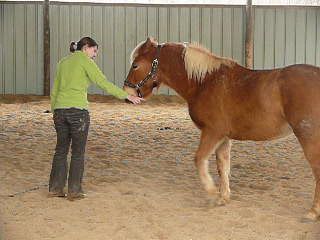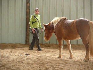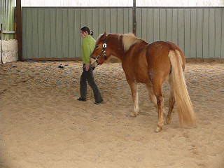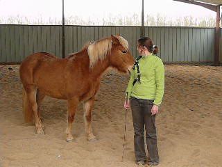 | Dire merci | niveau boulot... ![]() déjà après le MF, elle était déjà un peu "agacée"... j'allais lâcher le boulot et puis je me suis dit qu'elle devait aussi apprendre à se gérer, même "un peu tendue du slip" ! donc 15 minutes à pied, pas plus... pour le "stick-to-me"... c'est un peu mieux mais c'est tjs décevant... ok elle me suit mais oreilles couchées, elle plante encore un peu et elle marche en crabe, il y a donc encore fuite de sa part... ![]() tant pis, j'ai fait ce que j'avais décidé... j'ai bossé : - reste : elle a compris, elle ne bouge presque pas en ligne droite par contre encore dur sur les côtés - recule (sans bouger mes pieds) bien mais elle ne recule pas encore trés loin (7 pas) - descend : faut que je la touche encore (la voix ne suffit pas encore) mais une simple pression suffit et par contre, elle a décidé de me souler avec le pli... comme par hasard à gauche ! mais bon j'ai fini par avoir deux beaux plis...- je lui ai appris à me laisser la tête en bas pour lui mettre le licol un genou à terre (jeu du licol en equifeel), c'était pas mal pour une première ! ![]() voilà, je suis un peu déçue car qd je pense qu'il y a des chevaux qui AIMENT ça et/ou qui apprennent trés vite, c'est... mais bon, je savais comment ça se passerait, c'est mm moins pire que la dernière fois... faut qu'on continue, en tout cas, je ne lâcherai pas !ça montre bien que pour l'instant, elle est "butée" contre moi, nveau relationnel, c'est pas ça... mais on y arrivera... ![]() allez suis-moi... ![]() ![]() là on voit qu'elle va se décaler de moi avec son épaule... ![]() ![]() je l'appelle après un "reste" ! ![]() là elle s'est déconnectée, elle plante et je l'appelle... ![]() ![]() le pli à droite était parfait ![]() un "recule" ![]() voilou à suivre... |