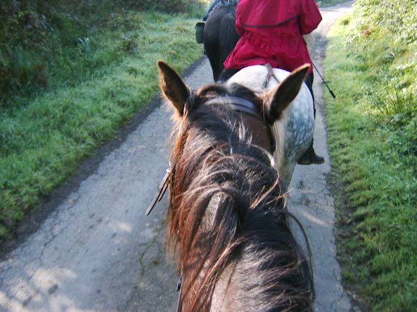 | Un peu dégoutée après cette mauvaise expérience, il fallait que je reparte d'un bon pied...aussitot dit aussitot fait PETITE BALADE TRANQUILLE organisée hier à 4 chevaux...résultat : ma meilleure balade depuis que j'ai loulou !!! C'était parfait, cette balade était faite pour moi, pour me remettre en confiance et apprendre apprendre et apprendre encore...c'est chose faite. Je suis allée en tête un bon bout de la balade, petite hésitation du gamin au début puis une fois parti c'était nikel, un peu plus sur l'oeil mais peur de rien, très attentif à mes demandes, part au trot impec, s'arrête quand je demande...Et surtout GALOP NIKEL bon départ et il arrive désormais à maintenir le PETIT GALOP !!!!!!!!! Trop trop trop contente de cette balade qui nous a beaucoup appris à tous les deux...très très fière de lui... Ca y est je crois que je me sents prête à partir seule avec un vélo ou une personne à coté !!! Désolée du roman mais vraiment envie de vous faire partager cette belle évolution et une bonne prise de confiance... |