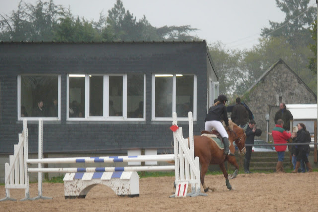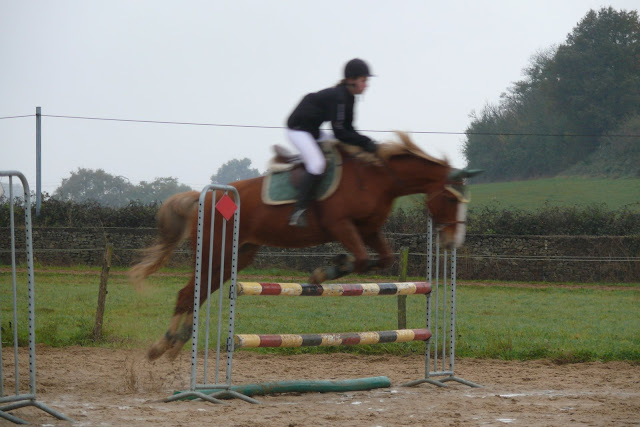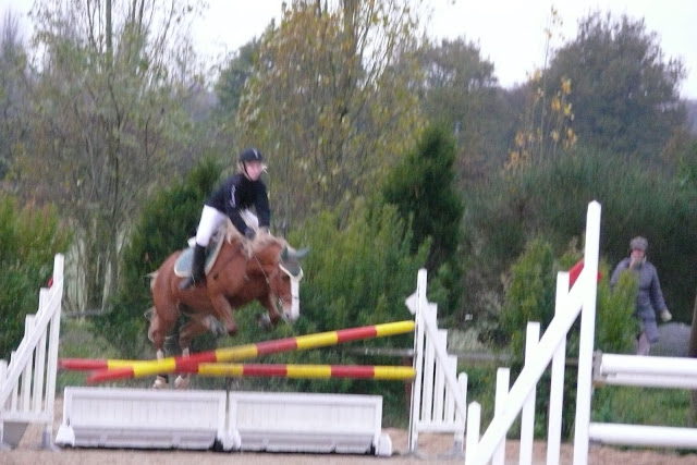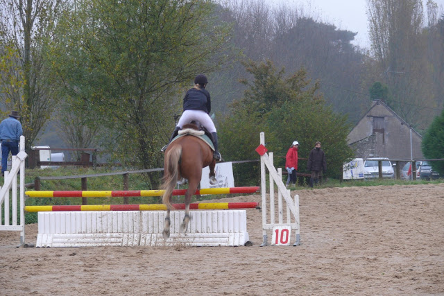 | Dire merci | Désolée, sur la détente de la 110, il faisait vraiment trop froid, j'ai donc daigainé l'appareil juste une fois, et pour prendre un photo complètement naze! mais au moins vous voyez le gros oxer que Camille a sauté! elle en était d'ailleur très fière!![]() Son tour sur la 110 arrive ![]() |