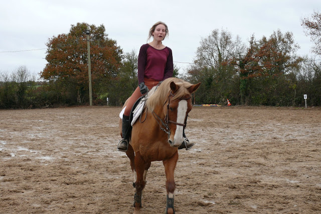 | Dire merci | Ah, et sur une du début, je me penche parce que Kidjy est en train d'éternuer, et j'essaye de ne pas lui faire mal dans la bouche avec le mors de bride, donc j'avance les mains. |