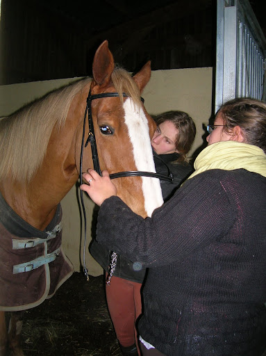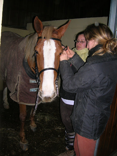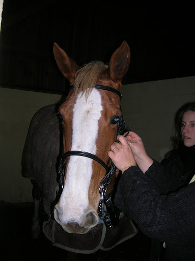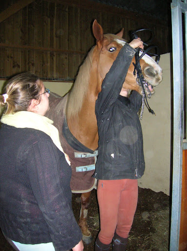 Déconnecté | Le cadeau de noel de Gracio ... Une belle bride noire pour sa belle blonde !! Le montage de la bride (a 2 parce que Gracio c'est pas une pro du montage de filet ou de bride ...) En suite l'essayage ... là aussi il faut au moindre etre 2 ... Ce regard d'amour ... Et on libere la bete !! |