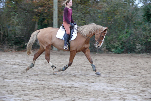 Mais en fait non ! bon le premier saut a été bizarre, elle a été surprise par le saut de puce, et moi aussi, donc la rectitude ensuite n'était pas trop là, mais on est repassées encore une ou deux fois, pour finir sur quelque chose de vraiment bien, où elle a pu repasser au pas avant la fin de la diagonale.