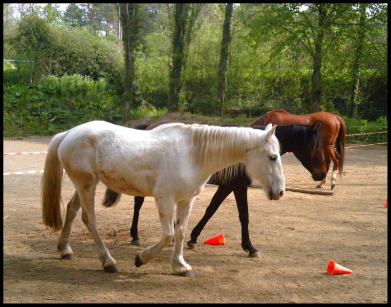 | Dire merci | Alors, aujourd'hui grand jour!!!! ce matin, je sort la bête pour le decrasser un peu, et profite que mon papounet passait par la. ![]() ![]() ![]() une fois brossé ![]() ![]() ![]() et cet aprem, hop, c'est parti pour une séance montée!! (j'avais mon beau père pour prendre des photos) d'abord je longe la bête qui est tres énervée ![]() ![]() ![]() ![]() et hop, c'est parti ![]() Puis rhawa s'énerve et réussit a retirer le filet. Aussitot il s'arrète et attent sagement. ![]() je remet le filet ![]() et c'est reparti ![]() ![]() ![]() Rhaw repique une colère ![]() et puis on se remet en marche ![]() ![]() ![]() ![]() J'essaye un petit trot: super, il est tout cool ![]() ![]() voila |