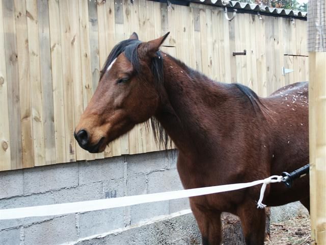 | Dire merci | Noria à bien progresse dans son travail depuis son arrivé il y a un peu plus de 3 mois maintenant, mais il est vrai que nous avons eu quelques petits problèmes de dos à regler entre temps... Eh oui une trotteuse qui à couru... ça laisse quelques traces... un Osteopathe est donc venu la voir et la entièrement décoincé (elle avait à peu près une vertebre sur deux à remettre en place) de là s'est suivi une période de repos et nous reprenons le travail tout doucement afin de muscler la madame correctement et de la mettre en équilibre sur les hanches... Après avoir repris toutes les bases avec elle depuis son arrivé, nous commencons le travail monté maintenant et les petit tours (jambette...) On referra très bientot une scéance photo pour v ous montrer ses progrès. |