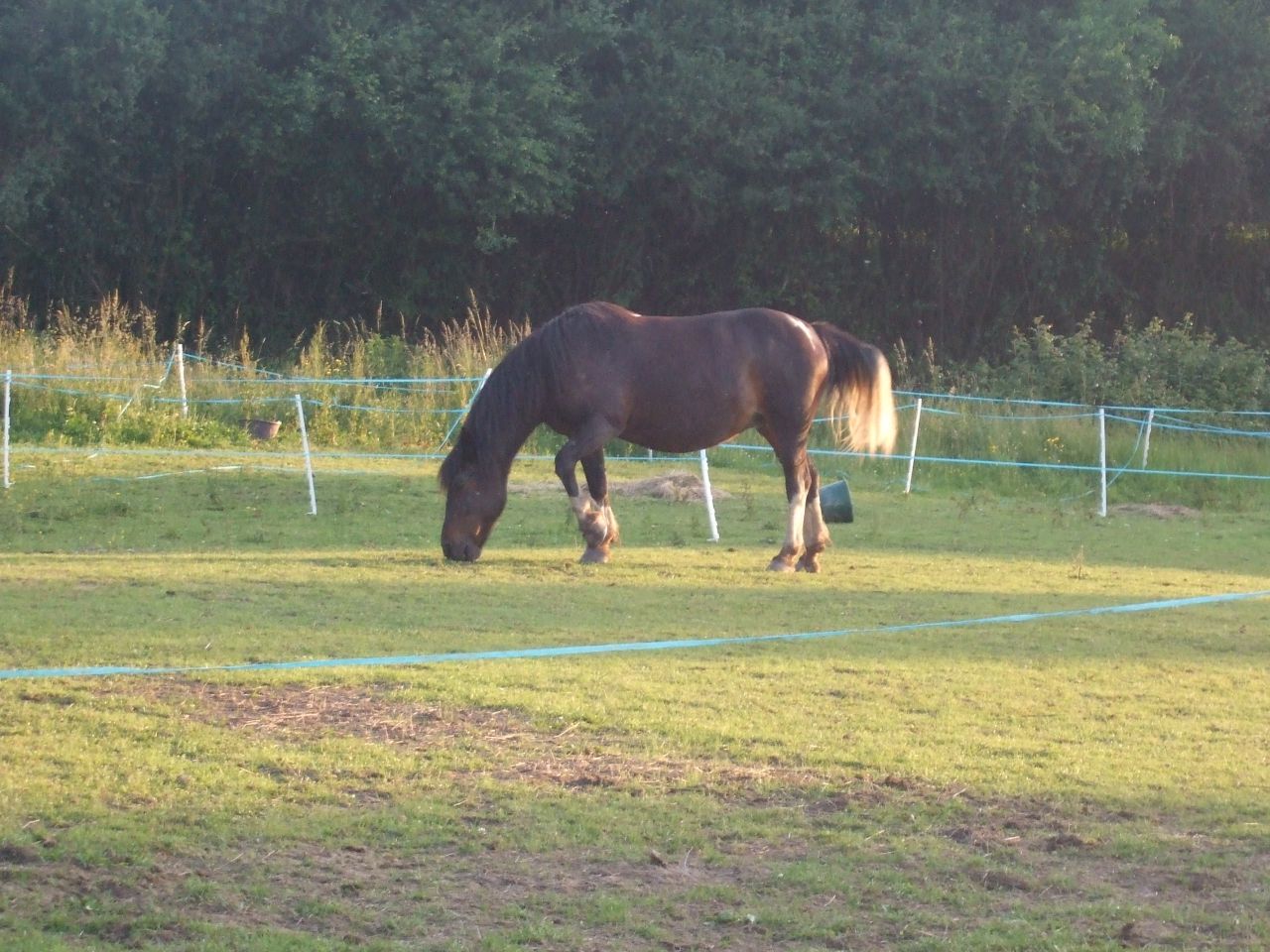 | Dire merci | miss se la coule douce on taff régulierement quand meme... elle est pas contente car a la longe je lui colle les elastics..... Et on bosse pas mal sur le plat ça change de l'exterieur ou il y a pas mal de taon et de mouche plate.... Vendredi on sautille elle aime et moi j'apprend a ne plus avoir peur! une pré retraite comme ça c'est pas des vacances tous les jours quand meme! Là c'est cool car pas mal de chevaux sont partis en vacance au pré donc il y a assez de place pour qu'elle aille dehors quasi toute la journée en plus elle est dans un paddock mitoyen avec d'autres chevaux donc elle groom les copains se chipote récolte des traces de dents sur le cul bref une presque vie de bouricotte... |