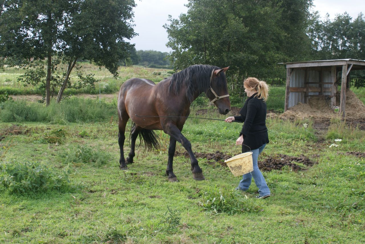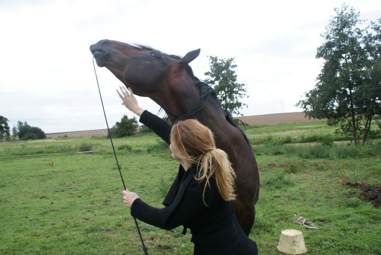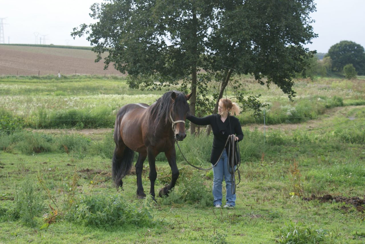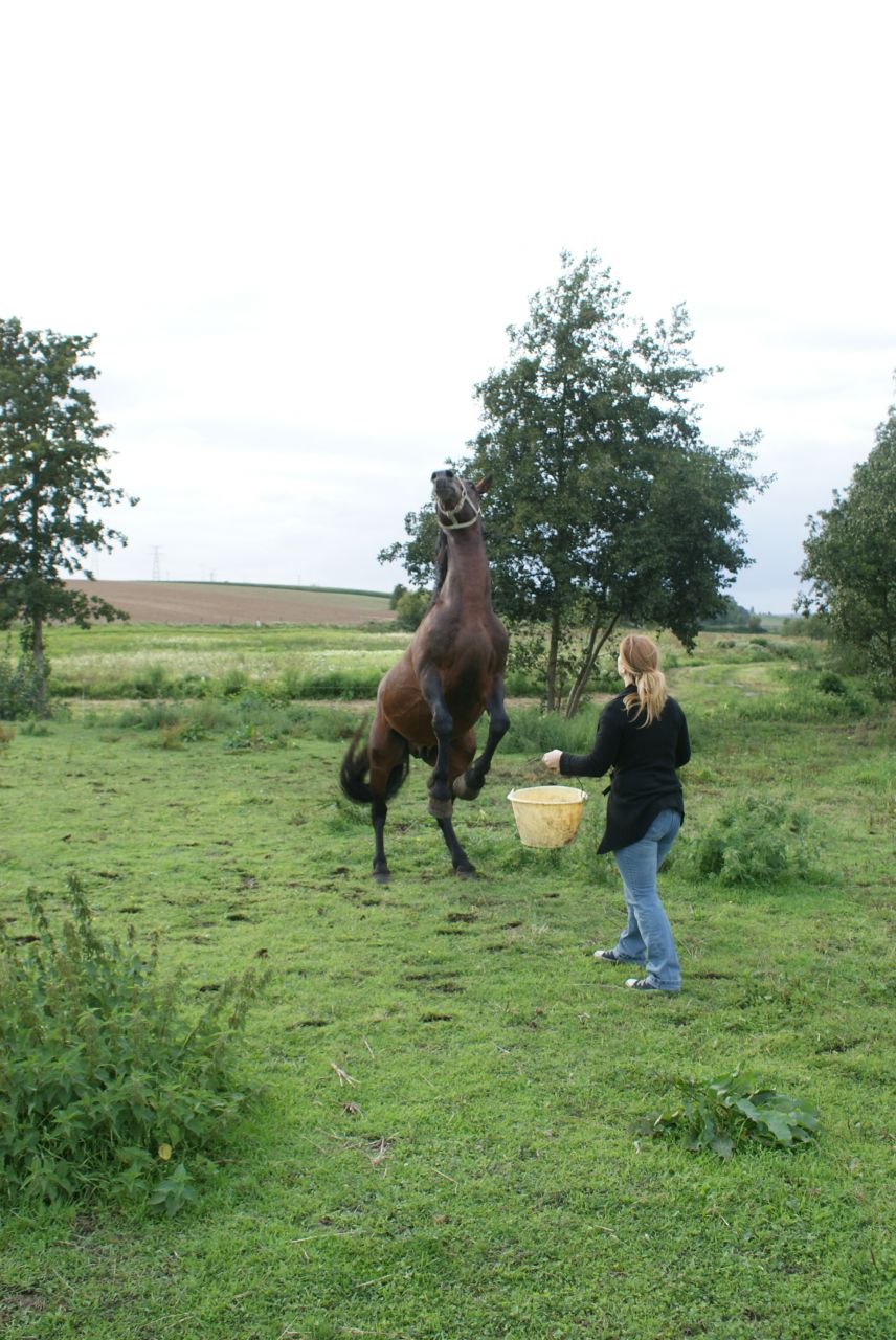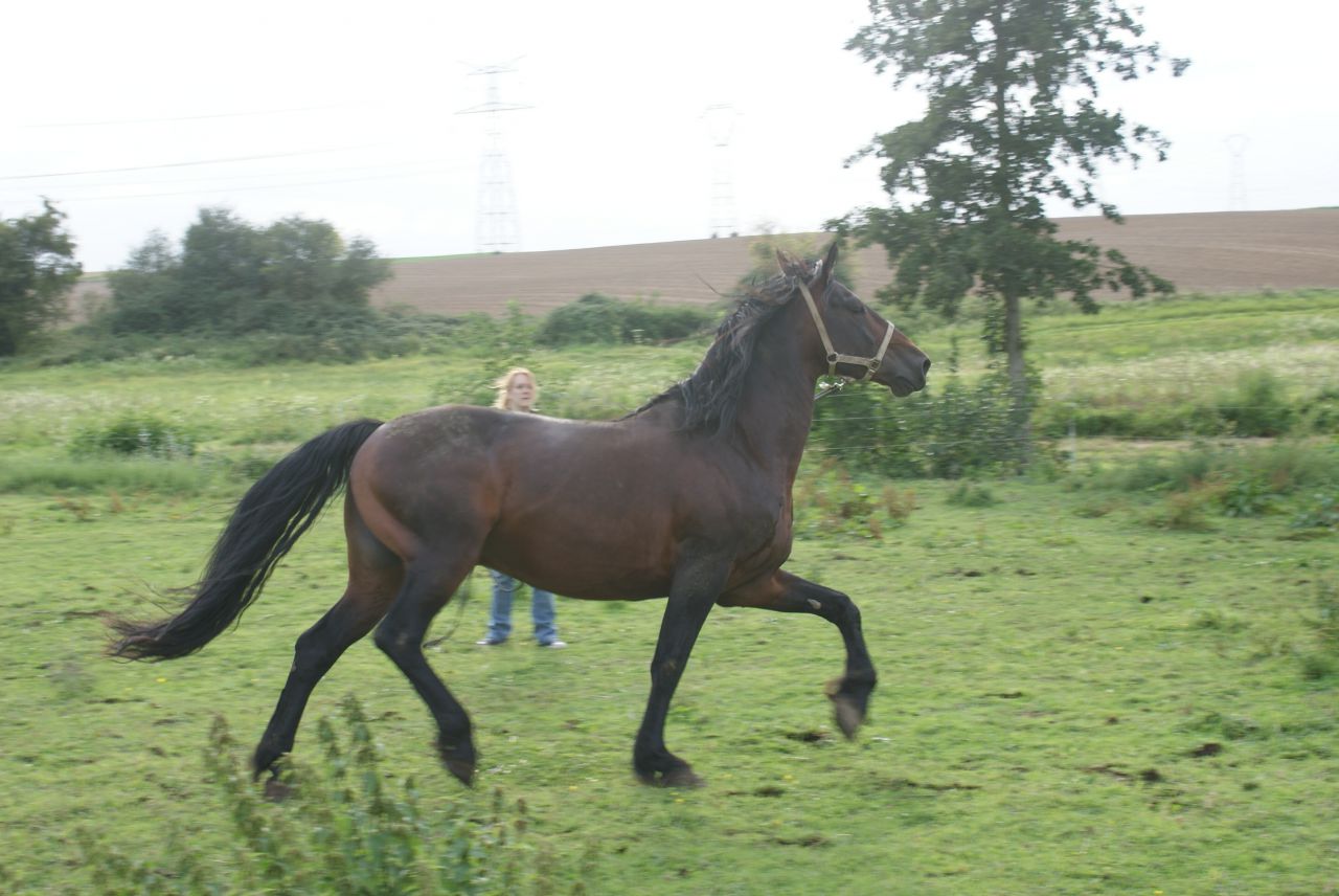 | Dire merci | à la longe, il faisait le terrible et bien sur, j'ai pris mon petit caveçon car le filet etait dans l'huile, resultat caveçon trop petit donc j'ai été obligé de le longer au licol (ça etait du sport) au pas: ![]() et hop, au bout de 5min, ça a dégénéré ![]() mais j'ai pas laché!!! ![]() la tension est un peu redesencu, et on passe tranquillou au trot: ![]() puis on le longe de l'autre coté: ![]() tite papouille de recompense ![]() ![]() |