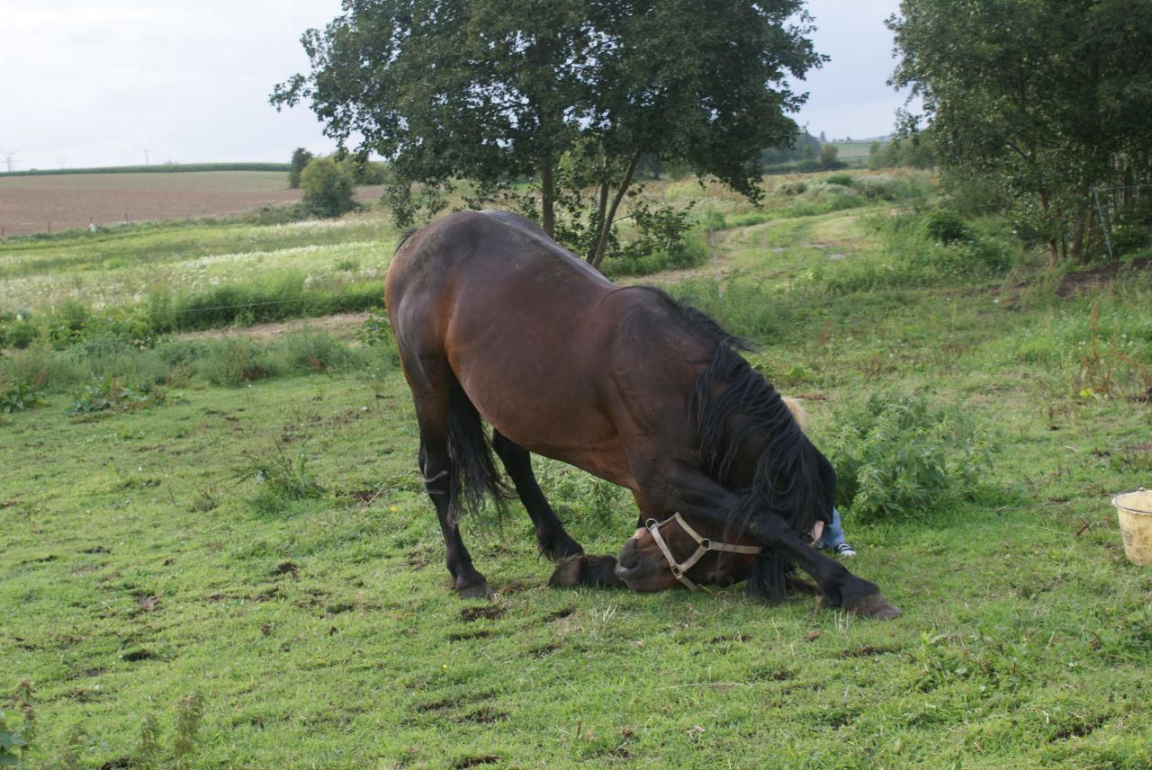 | Dire merci | 8h45 endormi et saucissoné... 9h15 tout était fini... cheval remis à vache... 9h20 unique tentative pour se remettre debout et réussi... Par contre il avait bien compris qu'il ne fallait plus qu'il bouge.... Là il mange tranquillement au paddock et ne cherche même pas après les copains..... ![]() |