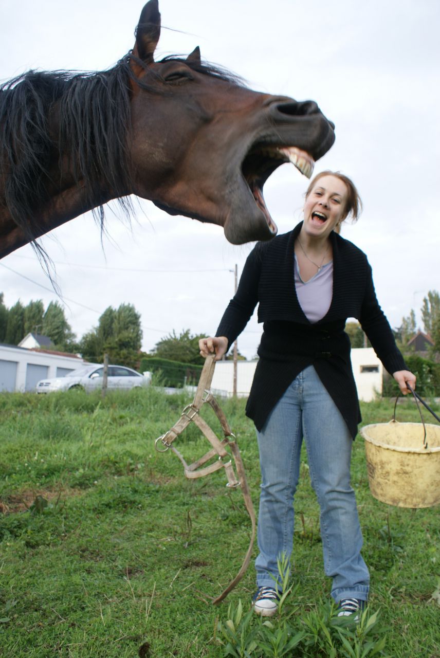 | Dire merci | nani,as tu une photo du QQ de bad boy? caracol le fait que tabata soit plus délicate à droite,est ce que ça pourrait pas être parce qu'elle est gauchère? c'est courament constaté ce phénomène pour cet hiver,il n'y a pas de petits concours de dressage que tu pourrai faire? as tu acheté la selle butet? idole et barney sont rentrés barney est monté nickel chrome,bien mieux que sa mère d'ailleurs,qui nous a un peu enquiquiné (pas de quoi foutter un chat,elle ne voulait pas se mettre en place......) lui,il est monté tranquillement et s'est positionné comme il faut,dans le bon sens (les chevaux voyagent dos à la route) je n'ai pas assisté à la descente,ni même à la rencontre de nomade et idole (je me suis retrouvée dans les bouchons dans rouen,vu que je suis partie plus tard de chez la proprio de marco) visiblement,pas d'effusions de joie entre les chevaux,ils ont laissé idole et barney au pré,nomade n'a pas cherché à les rejoindre (je l'avais mis au box). il a bien vu que c'était elle,pas sa préférée,qui revenait. Message édité le 09/09/11 à 18:48 |