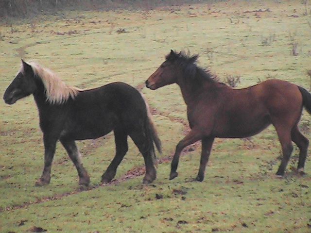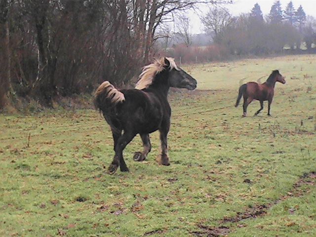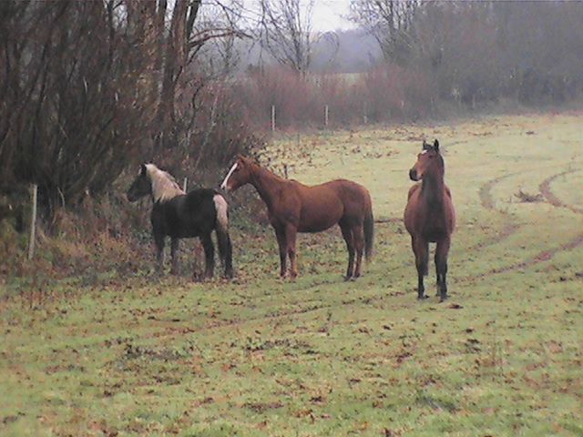 | Dire merci | Oui, je pense qu'elle s'est un peu étoffée, d'ailleurs, je crois qu'elle devient un peu cagneuse des antérieurs, comme tu me disais que ca pouvait arriver.....on va essayer de corriger ca un peu avec le maréchal.... Quand elle est arrivée, je me rapelle qu'elle avait l'os au milieu du poitrail qui ressortait, ca faisait bizarre, et là, ca ne fait plus pareil... C'est pour ca aussi que je suis décidée à ne pas la débourrer encore...d'ailleurs j'ai pris 2 semaines de vacances en mai pour le faire, comme ca c'est déterminé!! Elle aura 3 ans. Pour l'instant je stagne un peu avec elle, je ne fais plus grand chose, avec le temps, et puis le fait de savoir que je dois attendre pour le débourrage; mais pourtant, il y a beaucoup de choses que j'aimerais qu'elle sache avant de monter dessus... Je vais peut-être plutot attendre les beaux jours pour après vraiment faire du boulot régulier.. |