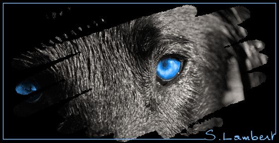 | Dire merci | Logiciel utilisé pour cette retouche PSP X. Mais je préfère PSPX2 ... mais je l'ai à la maison, pas ici au bureau.... whoops je m'a trahi.... ceci dit, la retouche que j'ai faite est hyper facile ! la photo a été convertie en N&B... retouche des iris et colorisation... ajout d'un cadre et le tour est joué ! |