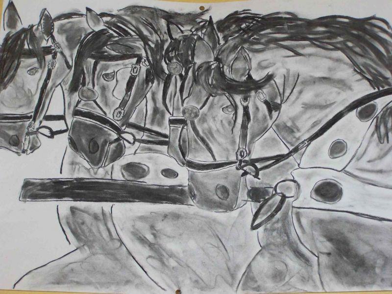 | Dire merci | ouais, ca se voit, j'ai trop du mal avec le fusain moi!!!!! une photo, pourquoi pas, j'en ai plein (plein plein plein) tu as des criteres précis? photo entiere? portrait? sellé? en liberté? |